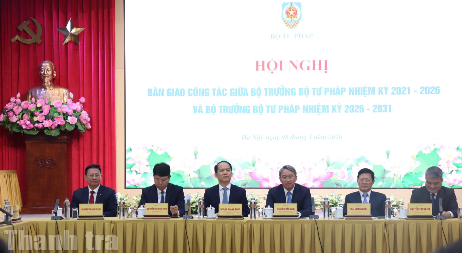 (Thanh tra) - Chiều 8/4, Bộ Tư pháp đã tổ chức hội nghị Bàn giao công tác giữa Bộ trưởng Bộ Tư pháp nhiệm kỳ 2021-2026 và Bộ trưởng Bộ Tư pháp nhiệm kỳ 2026-2031.