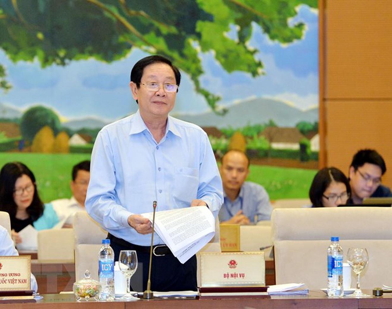 Bộ trưởng Bộ Nội vụ Lê Vĩnh Tân trình bày tờ trình. (Ảnh: Trọng Đức/TTXVN)