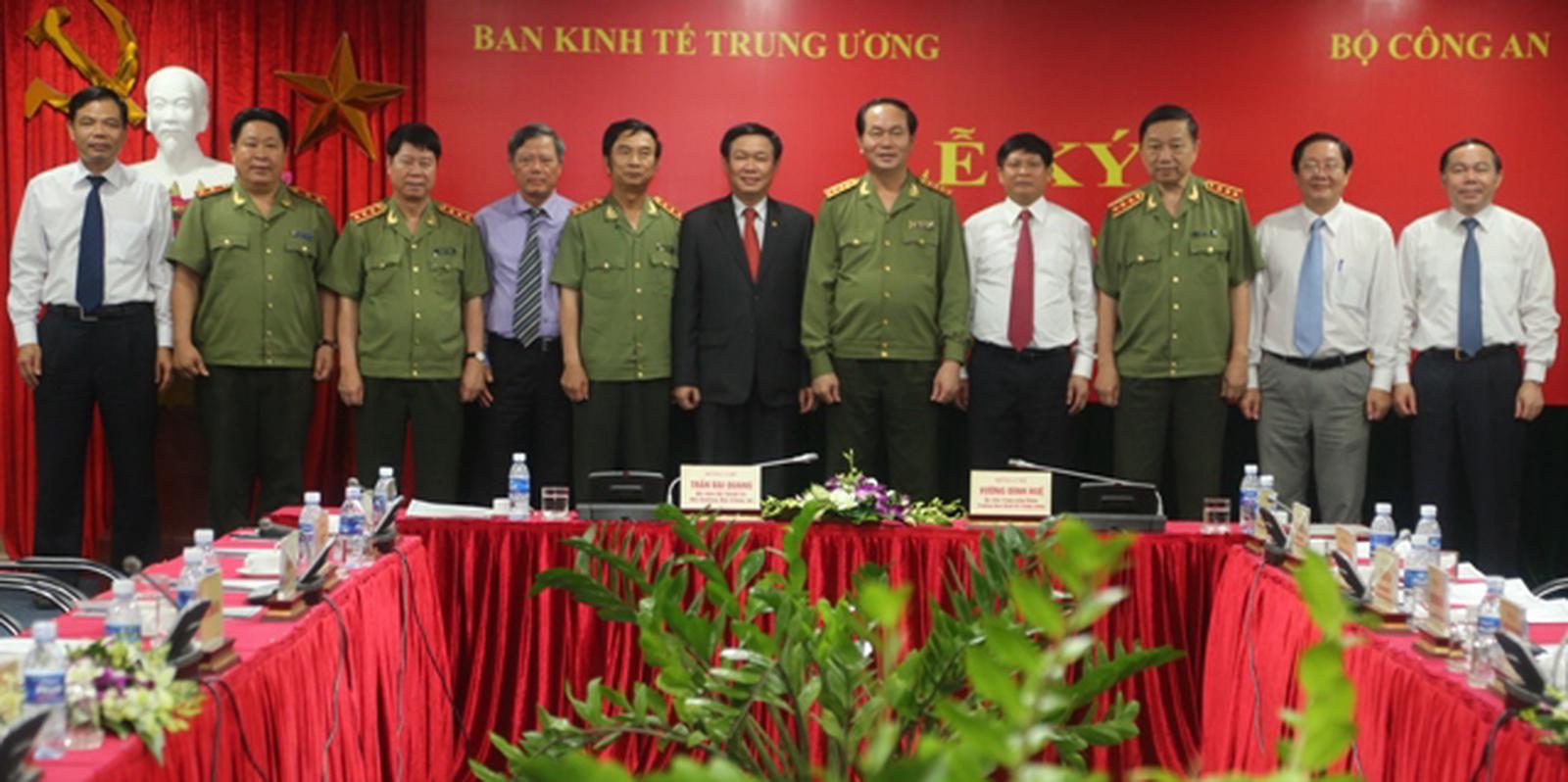 (Thanh tra) - Chiều 26/9, tại Hà Nôi, Ban Kinh tế Trung ương và Bộ Công an đã tổ chức ký Quy chế Phối hợp công tác. Đại tướng Trần Đại Quang, Ủy viên Bộ Chính trị, Bộ trưởng Bộ Công an và GS.TS Vương Đình Huệ, Ủy viên Trung ương Đảng, Trưởng Ban Kinh tế Trung ương chủ trì lễ ký.