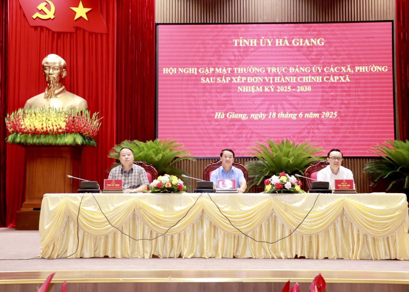 (Thanh tra) - Ngày 18/6, Tỉnh ủy Hà Giang đã tổ chức Hội nghị gặp mặt Thường trực Đảng ủy các xã, phường sau sắp xếp đơn vị hành chính cấp xã nhiệm kỳ 2025 – 2030. Đây không chỉ là cuộc họp thông thường mà là một dấu mốc quan trọng thể hiện rõ quyết tâm chính trị, bản lĩnh lãnh đạo và tinh thần trách nhiệm của cả hệ thống chính trị Hà Giang trong tiến trình đổi mới tổ chức bộ máy hành chính.