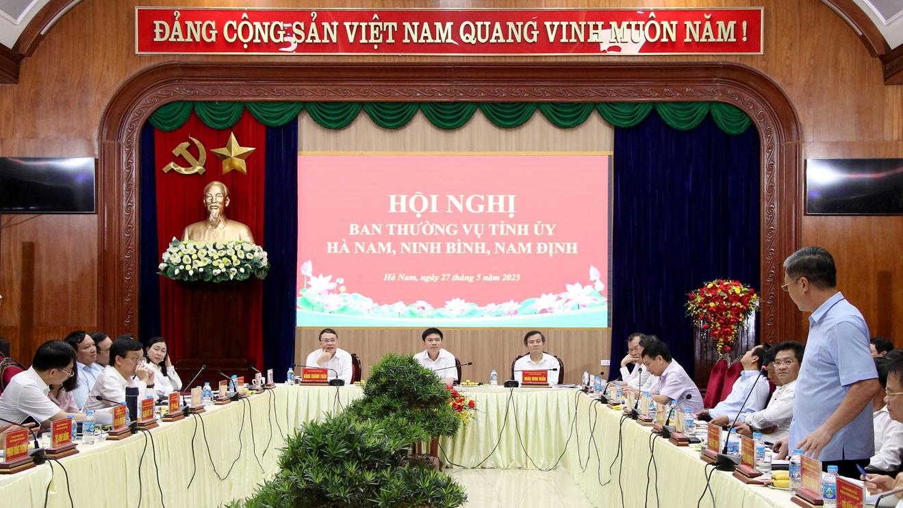 Hội nghị Ban Thường vụ Tỉnh ủy Hà Nam, Ninh Bình, Nam Định. Ảnh: BHN