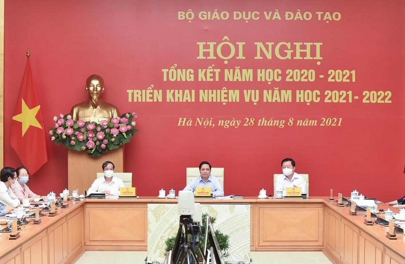 Phát biểu tại hội nghị, Thủ tướng Chính phủ Phạm Minh Chính đã chia sẻ với những khó khăn của ngành Giáo dục, của các thầy cô giáo, cán bộ quản lý giáo dục, học sinh, sinh viên triển khai nhiệm vụ năm học trong điều kiện dịch bệnh. Đồng thời, chúc mừng, ghi nhận, biểu dương kết quả ngành Giáo dục đã đạt được trong năm học vừa qua cũng như tinh thần chống dịch của ngành Giáo dục, đặc biệt tinh thần chủ động xung phong chống dịch của khối các trường y dược.