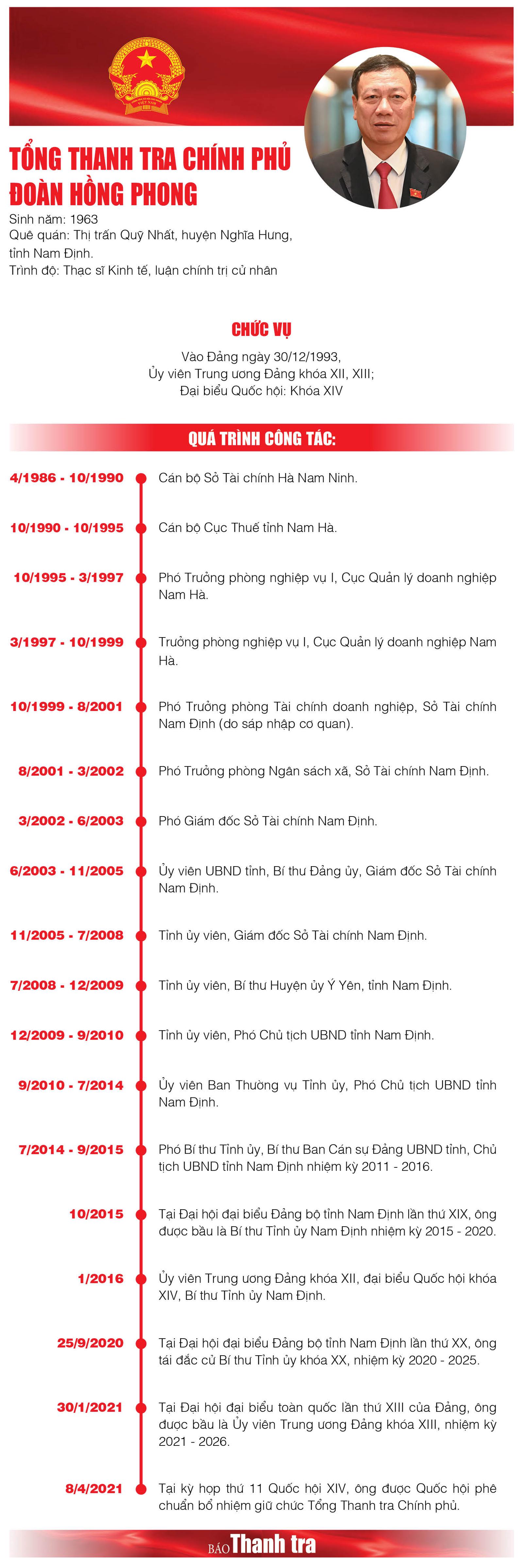 Theo nghị quyết được thông qua, ông Đoàn Hồng Phong được Quốc hội phê chuẩn bổ nhiệm giữ chức vụ Tổng Thanh tra Chính phủ.