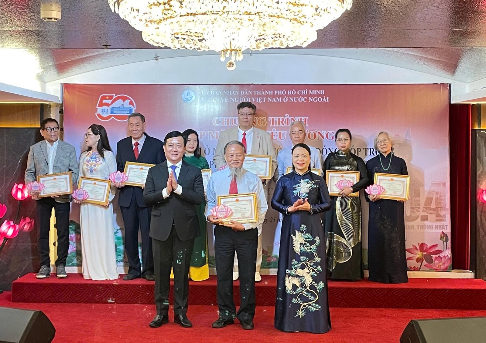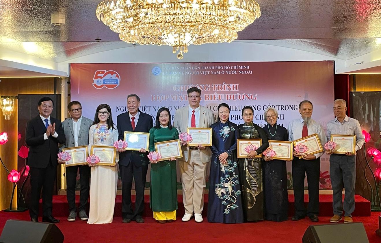 Uỷ ban về Người Việt Nam ở nước ngoài TP Hồ Chí Minh biểu dương người Việt Nam ở nước ngoài có nhiều đóng góp trong xây dựng và phát triển thành phố. Ảnh: NH