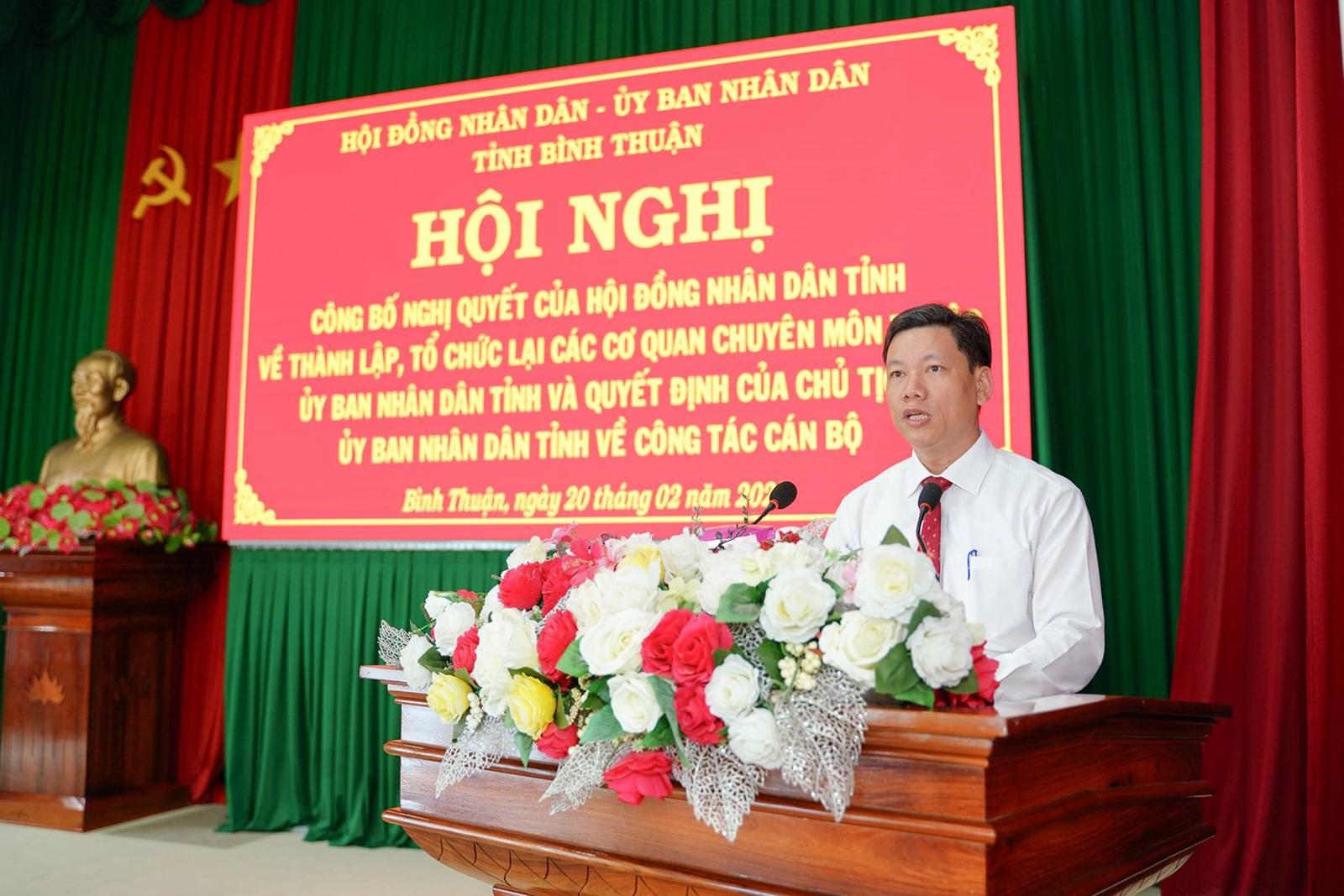 Phát biểu giao nhiệm vụ, Phó Chủ tịch Thường trực UBND tỉnh Phan Văn Đăng cho biết, hiện nay, cả nước nói chung và tỉnh Bình Thuận nói riêng đang triển khai thực hiện “cuộc cách mạng” tổ chức bộ máy nhằm hướng tới mục tiêu tinh gọn bộ máy, nâng cao hiệu lực, hiệu quả hoạt động. Xác định đây là nhiệm vụ lớn, có vai trò đặc biệt quan trọng, tác động sâu - rộng đến toàn hệ thống chính trị của tỉnh. Từ đầu tháng 12 đến nay, UBND tỉnh đã lãnh đạo, chỉ đạo các cơ quan, đơn vị tổ chức thực hiện hoàn thành nhiệm vụ sắp xếp tổ chức bộ máy các cơ quan chuyên môn theo Nghị quyết số 18-NQ/TW bảo đảm yêu cầu, tiến độ.