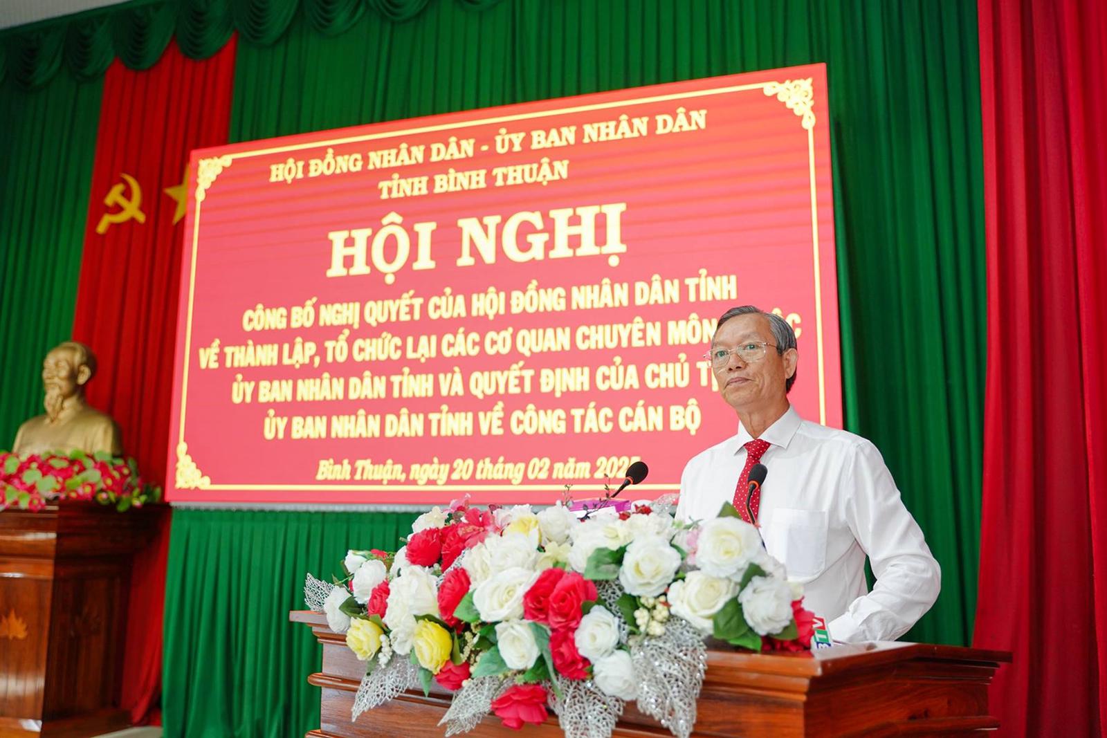 (Thanh tra) - Chiều 20/2, UBND tỉnh Bình Thuận tổ chức Hội nghị công bố Nghị quyết của HĐND tỉnh về thành lập, tổ chức lại các cơ quan chuyên môn thuộc UBND tỉnh và các quyết định của Chủ tịch UBND tỉnh về công tác cán bộ. Dự hội nghị có Bí thư Tỉnh ủy, Chủ tịch HĐND tỉnh Nguyễn Hoài Anh; Phó Chủ tịch Thường trực UBND tỉnh Phan Văn Đăng; lãnh đạo Ủy ban Mặt trận TQVN tỉnh; lãnh đạo các sở, ban, ngành, địa phương.