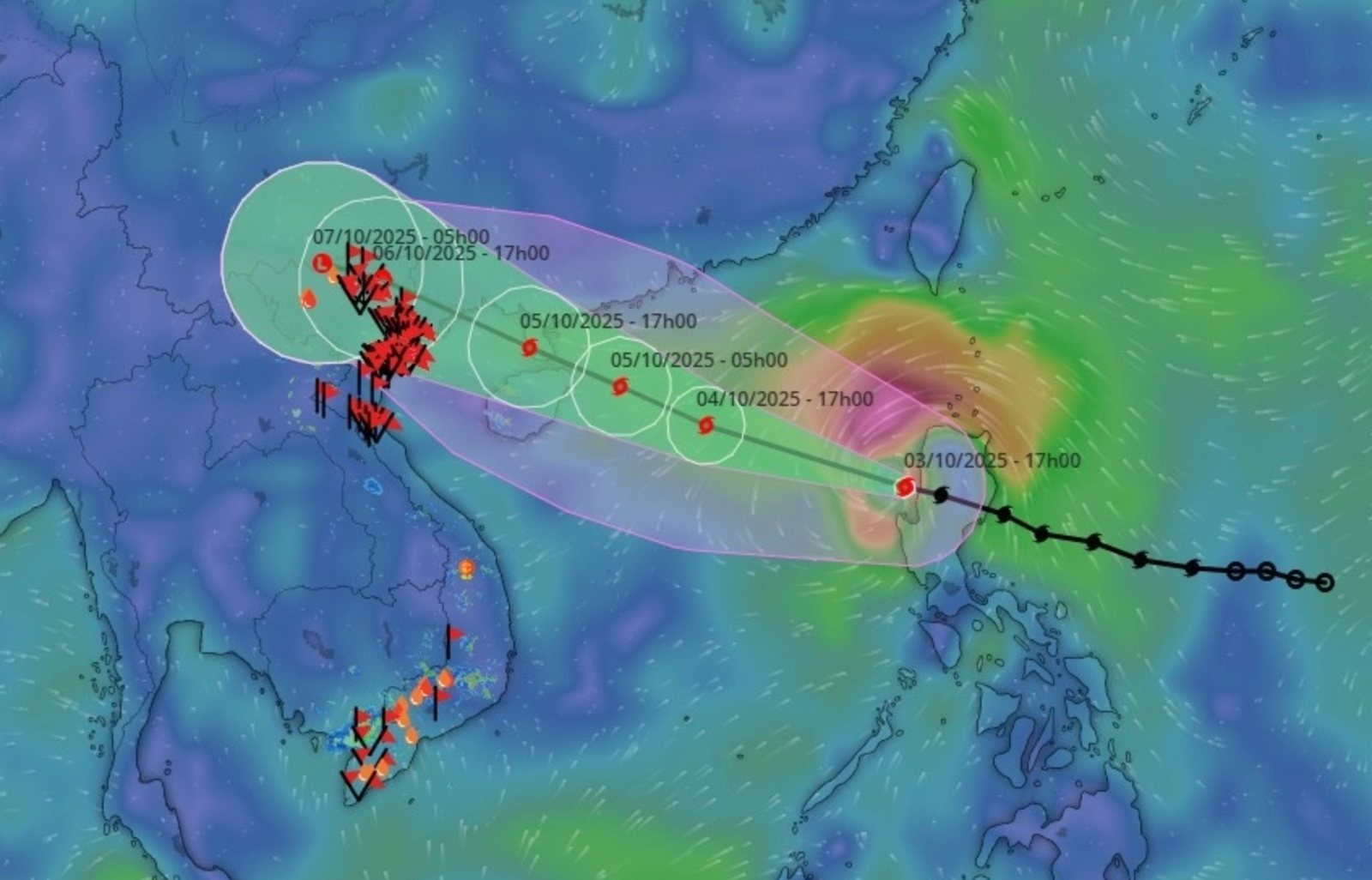 Dự báo đường đi và khu vực ảnh hưởng của bão Matmo. Ảnh: Hệ thống giám sát thiên tai Việt Nam