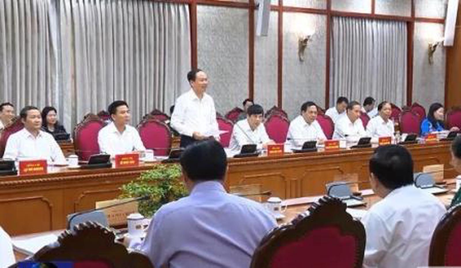 Bí thư Tỉnh ủy Thanh Hóa, Trịnh Văn Chiến phát biểu tại buổi làm việc. Ảnh: TL