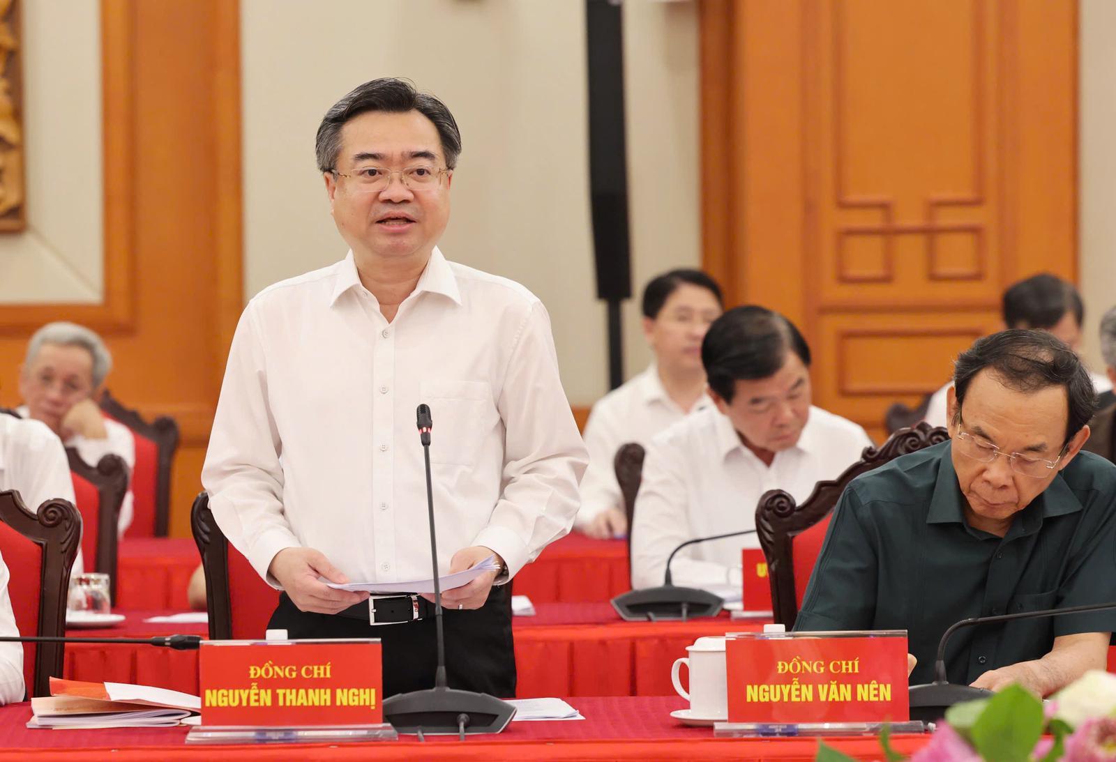 Phó Bí thư Thường trực Thành ủy TPHCM Nguyễn Thanh Nghị trình bày báo cáo tại buổi làm việc. Ảnh: Quang Phúc