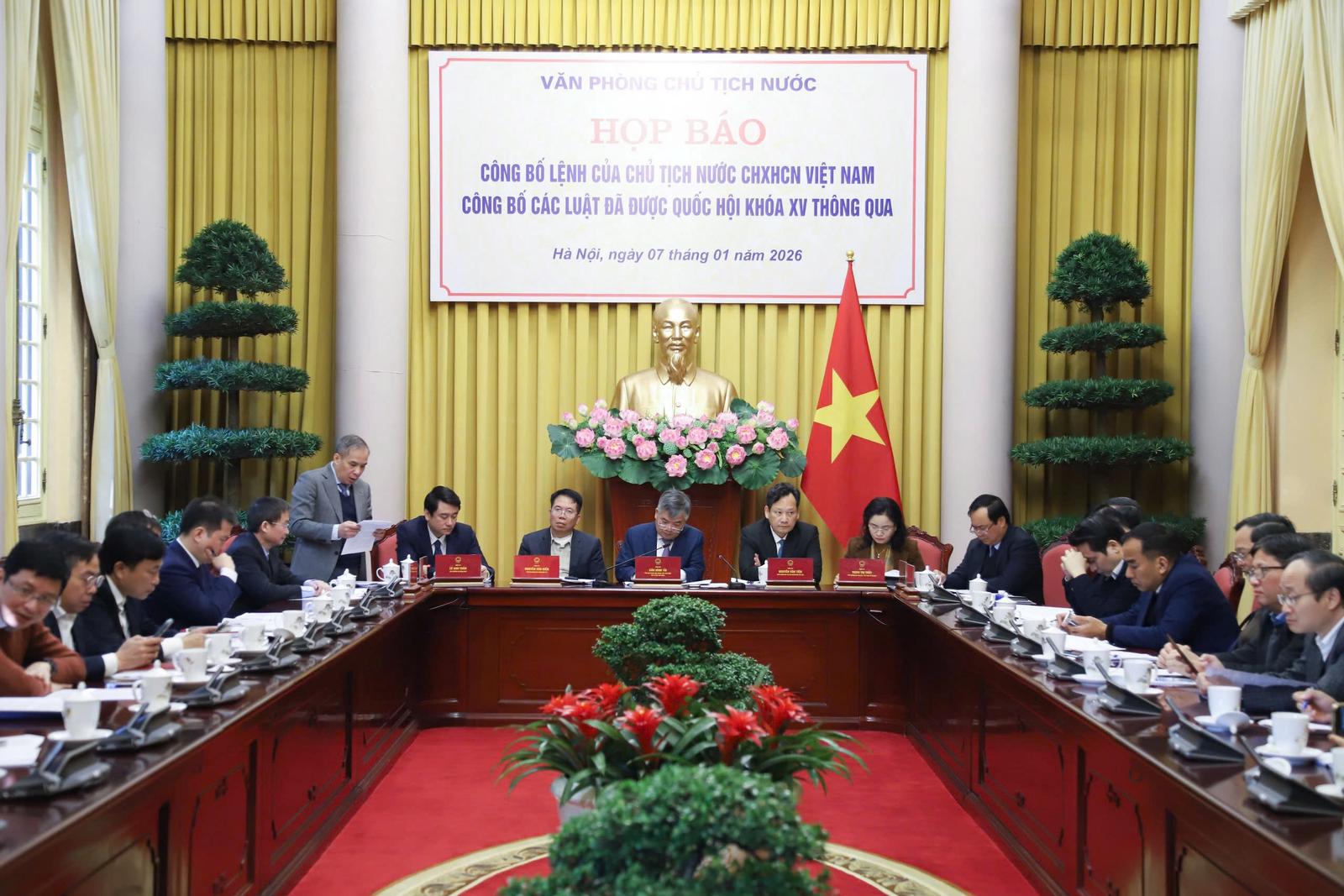 Văn phòng Chủ tịch nước tổ chức họp báo công bố các luật vừa được Quốc hội thông qua, trong đó có Luật sửa đổi, bổ sung một số điều của Luật Giáo dục. Ảnh: Đ.X