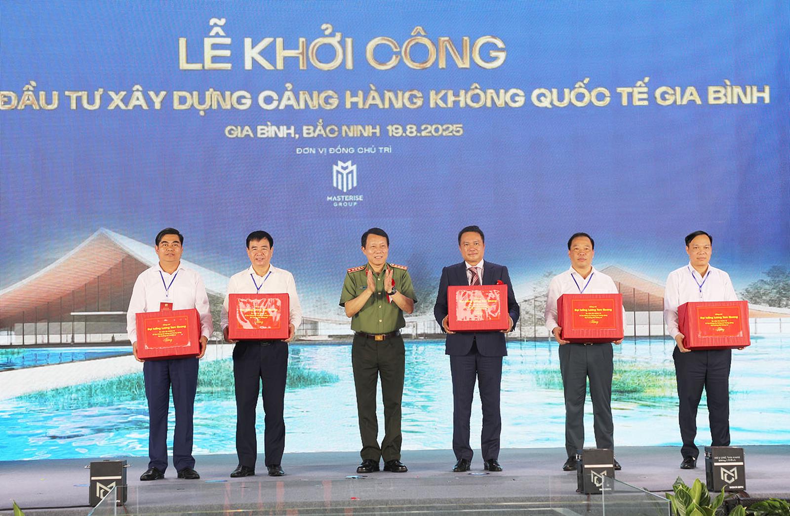 Tại buổi lễ, Bộ trưởng Bộ Công an Lương Tam Quang cùng lãnh đạo các bộ, ban, ngành của Trung ương và tỉnh Bắc Ninh đã thực hiện nghi thức khởi công Dự án xây dựng Cảng hàng không quốc tế Gia Bình.