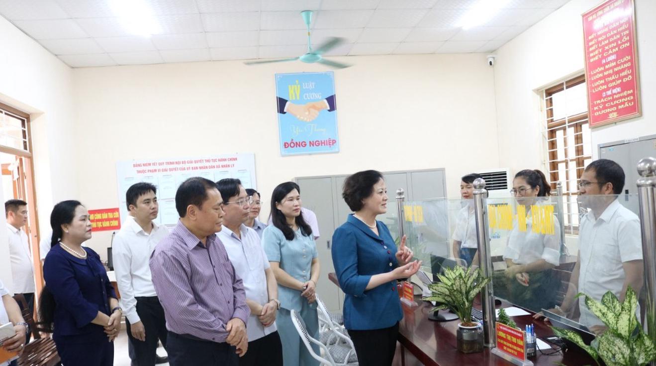 Bộ trưởng Bộ Nội vụ Phạm Thị Thanh Trà kiểm tra trụ sở Trung tâm Phục vụ hành chính công xã Nhân Lý. Ảnh: BLS