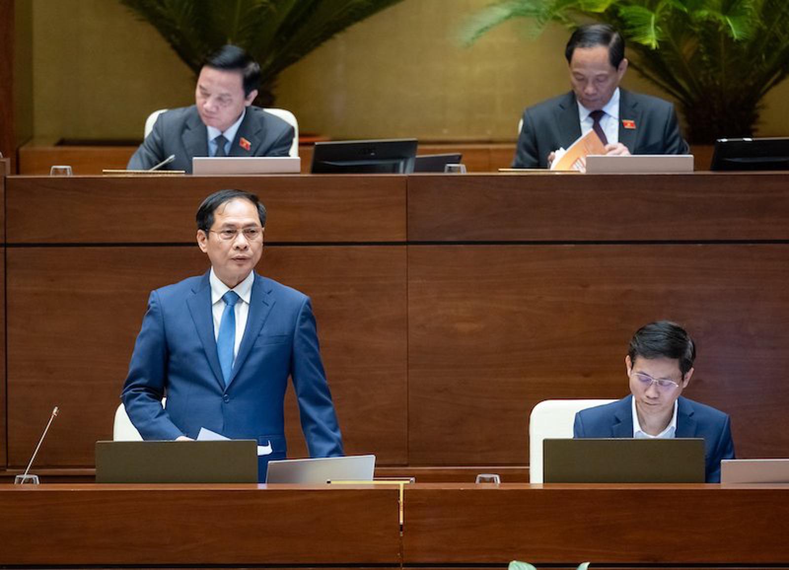 Bộ trưởng Bộ Ngoại giao Bùi Thanh Sơn trả lời chất vấn. Ảnh: Đ.X
