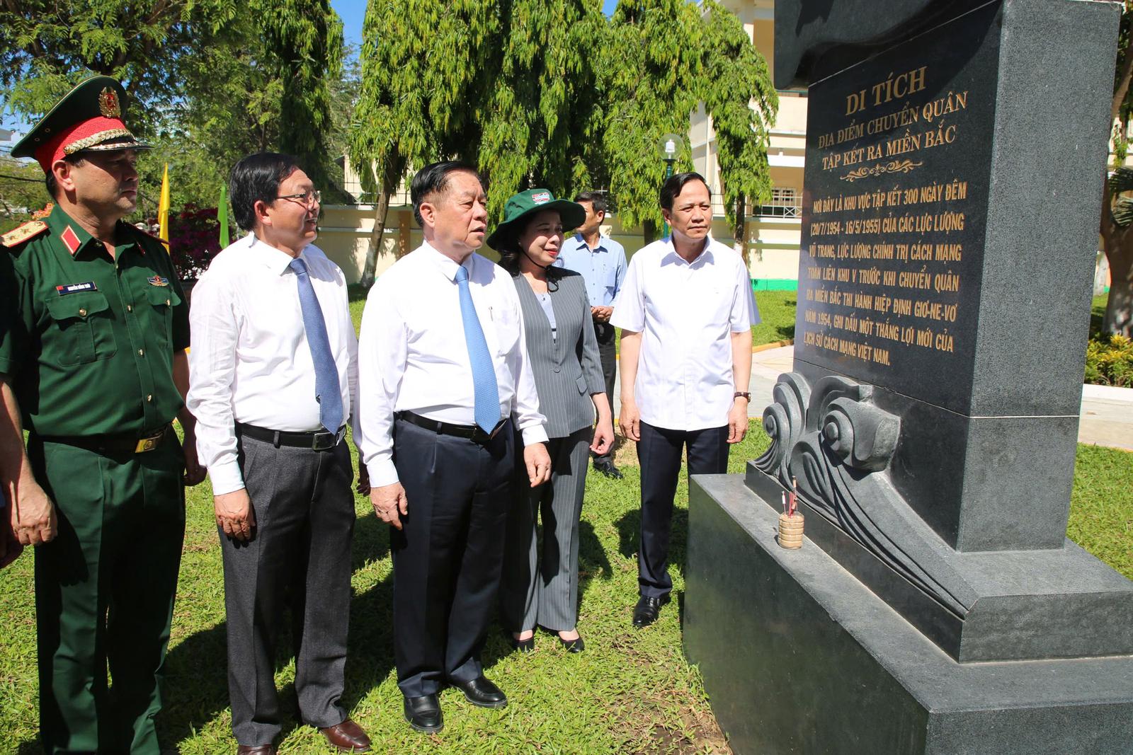 Trưởng Ban Tuyên giáo và Dân vận Trung ương Nguyễn Trọng Nghĩa; Bộ trưởng Bộ Dân tộc và Tôn giáo Đào Ngọc Dung cùng các đại biểu tham quan di tích Địa điểm chuyển quân tập kết ra miền Bắc tại thành phố Quy Nhơn (Ảnh: NH).