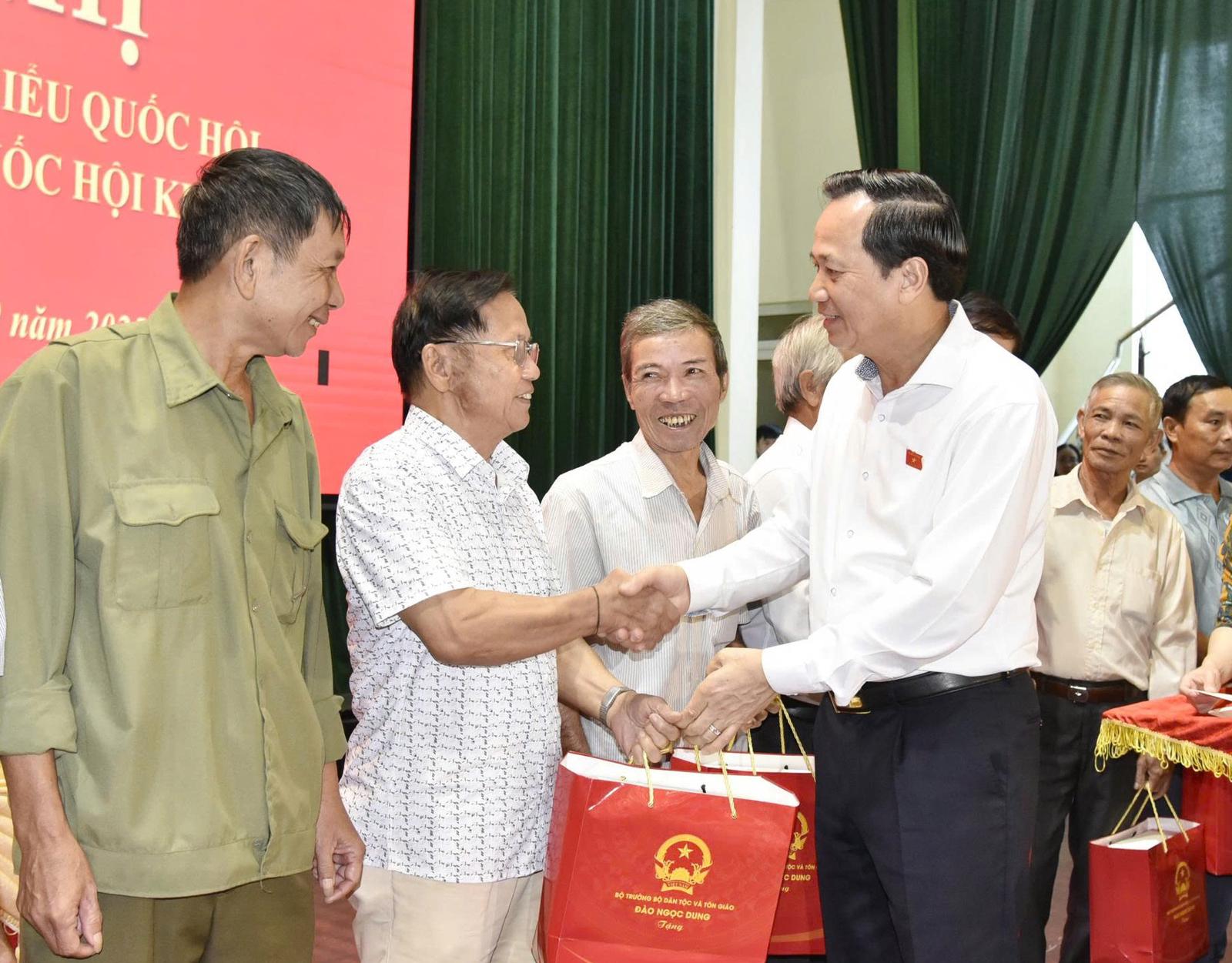 Thay mặt Đoàn đại biểu Quốc hội tỉnh, ông Đào Ngọc Dung, Ủy viên Trung ương Đảng, Bộ trưởng Bộ Dân tộc và Tôn giáo tiếp thu các ý kiến, kiến nghị của cử tri và giải trình một số nội dung thuộc thẩm quyền; lựa chọn ý kiến, kiến nghị của cử tri để đưa ra thảo luận trước Kỳ họp thứ 10, Quốc hội khóa XV, đảm bảo các ý kiến được giải quyết kịp thời, đáp ứng sự kỳ vọng của cử tri và Nhân dân.