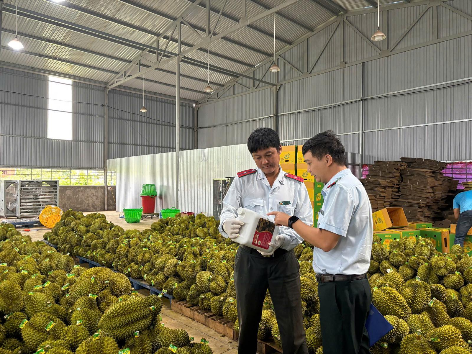 đoàn kiểm tra của Sở Nông nghiệp & Môi trường tỉnh Đắk Lắk trong một cuộc kiểm tra đột xuất các cơ sở kinh doanh, đóng gói sầu riêng trên địa bàn tỉnh. Ảnh: NG