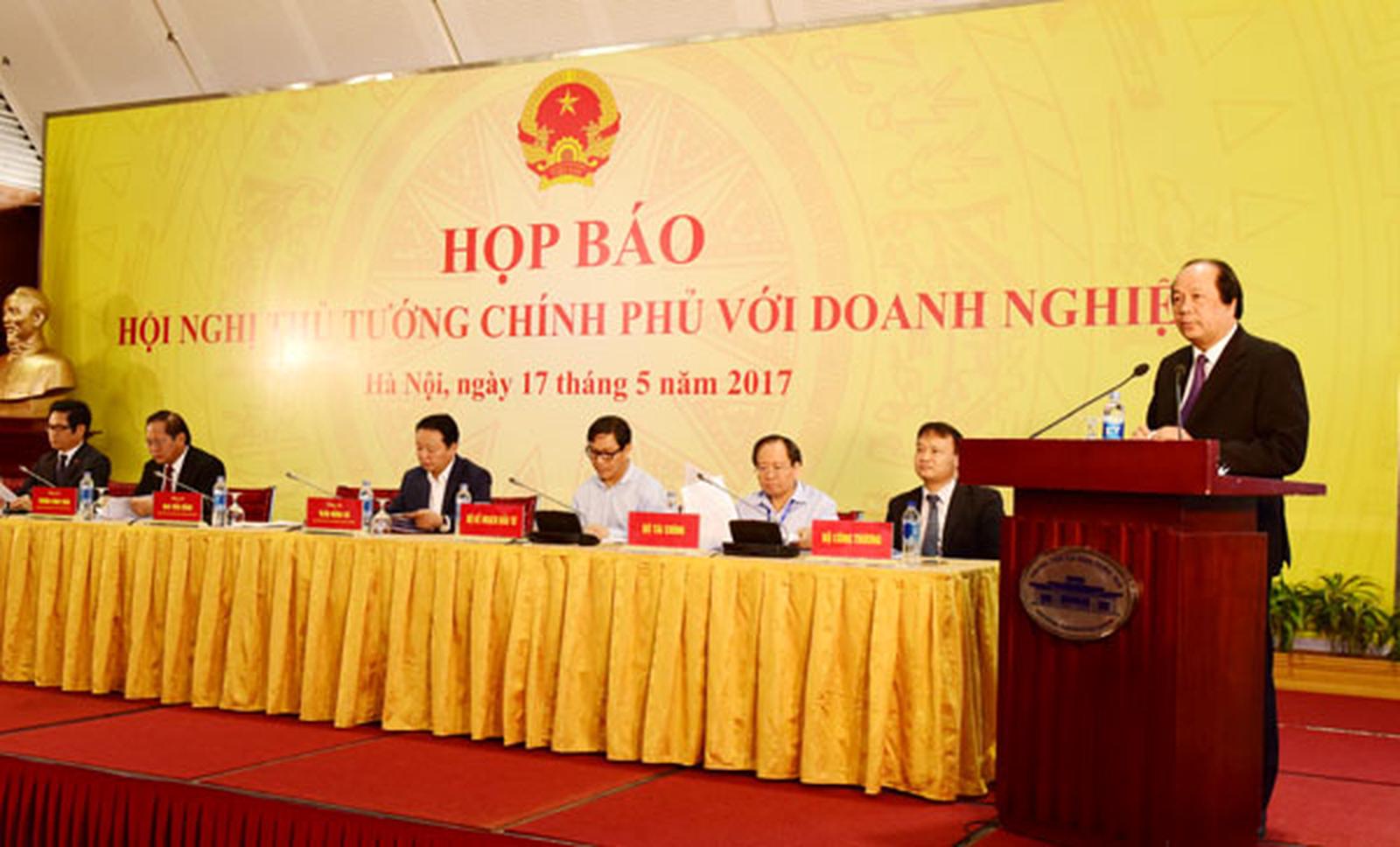 (Thanh tra) - Cuối giờ chiều ngày 17/5, tại buổi họp báo Hội nghị Thủ tướng Chính phủ với doanh nghiệp (DN), Bộ trưởng, Chủ nhiệm Văn phòng Chính phủ Mai Tiến Dũng nhấn mạnh: “DN tạo cho cán bộ hư, DN tạo cho cán bộ hỏng, DN cũng có lỗi. Cái đó phải nhìn hai mặt. Công khai, minh bạch là phương tiện tốt nhất để cùng nhau thực hiện, cùng nhau giám sát việc thực hiện chỉ thị tiếp tục thực hiện Nghị quyết 35”.