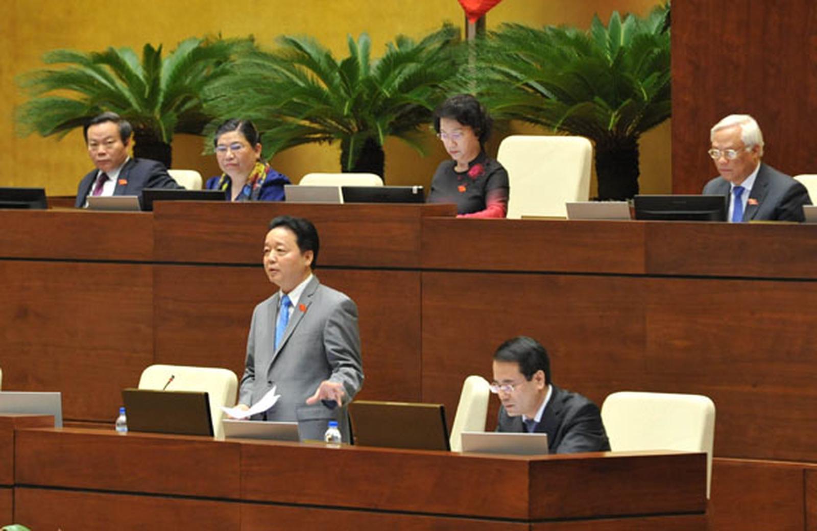 Bộ trưởng Bộ Tài nguyên và Môi trường trả lời chất vấn. Ảnh: TN