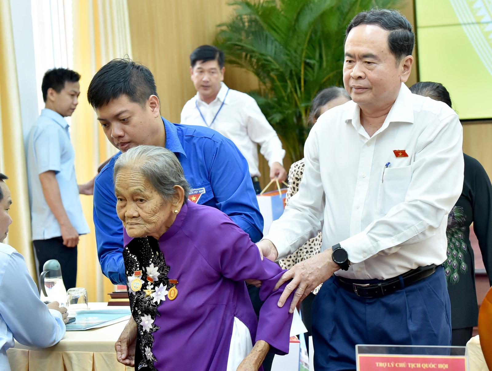 Trước đó, cùng ngày, Chủ tịch Quốc hội Trần Thanh Mẫn đã thăm, tặng quà tri ân người có công với cách mạng, gia đình chính sách trên địa bàn TP Cần Thơ nhân kỷ niệm 77 năm Ngày Thương binh - Liệt sĩ (27/7/1947 - 27/7/2024). Ông và Đoàn công tác đã trao 50 phần quà tặng các Mẹ Việt Nam anh hùng, gia đình chính sách, người có công tiêu biểu. Chủ tịch Quốc hội thăm, tặng quà tri ân người có công TP Cần Thơ. Ảnh: P.T Chủ tịch Quốc hội cũng đến thăm Mẹ Việt Nam Anh hùng Trần Thị Hai năm nay 92 tuổi có chồng và hai con là liệt sĩ tại phường Phú Thứ, quận Cái Răng; thăm, tặng quà thương binh Phan Văn Nguyện, thương binh 54%. Nhấn mạnh Đảng, Nhà nước và Nhân dân không bao giờ quên sự hy sinh của các anh hùng, liệt sĩ đã ngã xuống vì độc lập, tự do cho dân tộc, Chủ tịch Quốc hội cũng đề nghị chính quyền TP Cần Thơ bảo đảm những người có công và gia đình được thụ hưởng đầy đủ chính sách ưu đãi của Đảng, Nhà nước. Ông yêu cầu kịp thời tổ chức thực hiện tốt chính sách về điều chỉnh lương hưu, trợ cấp BHXH, trợ cấp ưu đãi người có công và trợ cấp xã hội từ ngày 1/7.