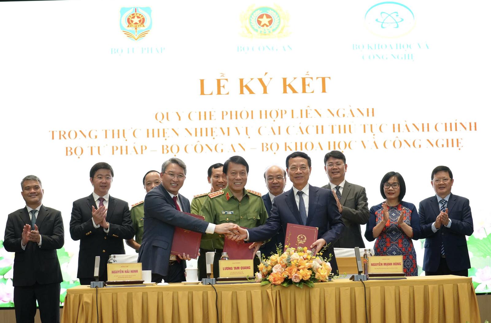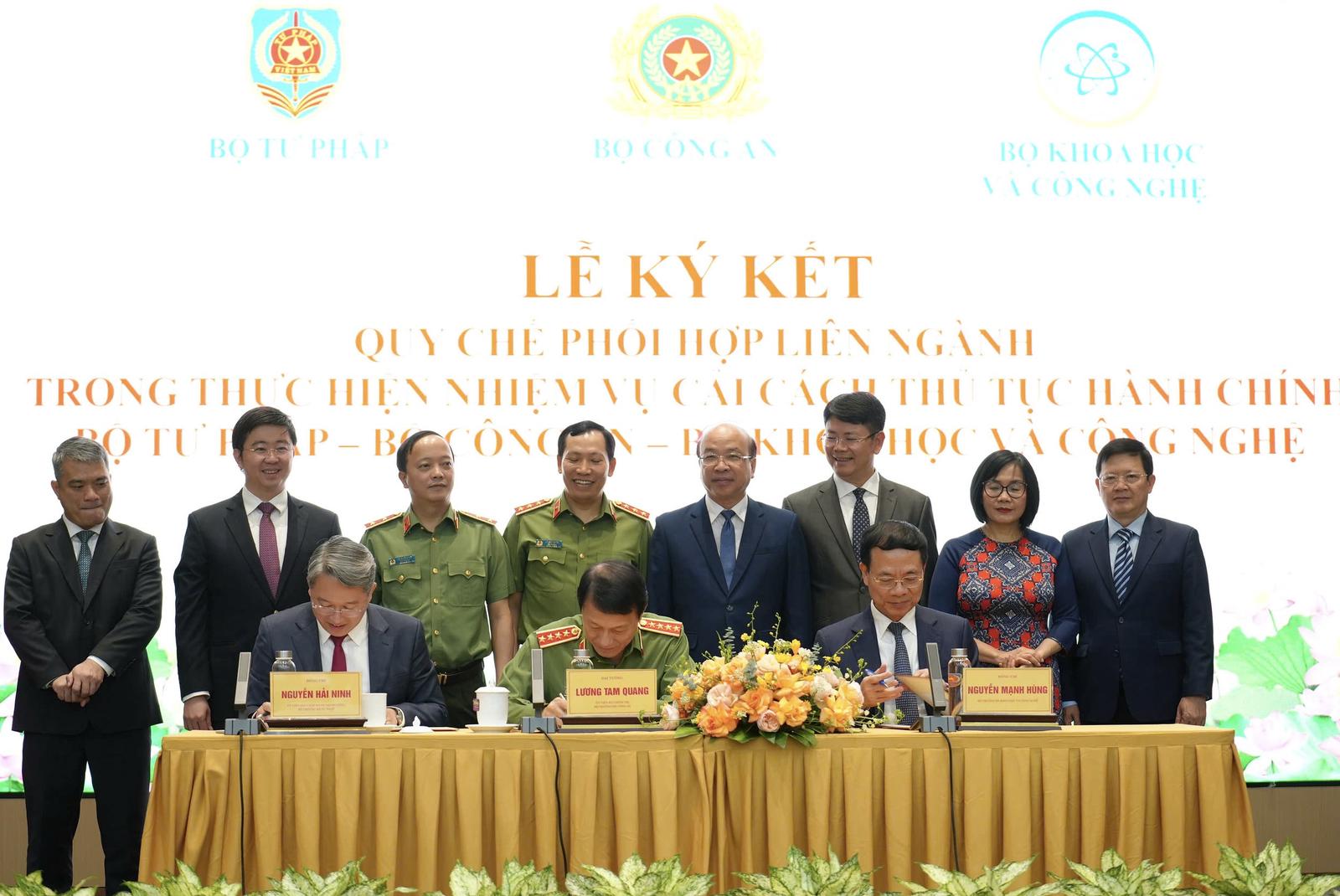 Bộ Công an, Bộ Tư pháp, Bộ Khoa học và Công nghệ ký kết Quy chế phối hợp liên ngành trong thực hiện nhiệm vụ cải cách thủ tục hành chính. Ảnh: Hoàng Thư