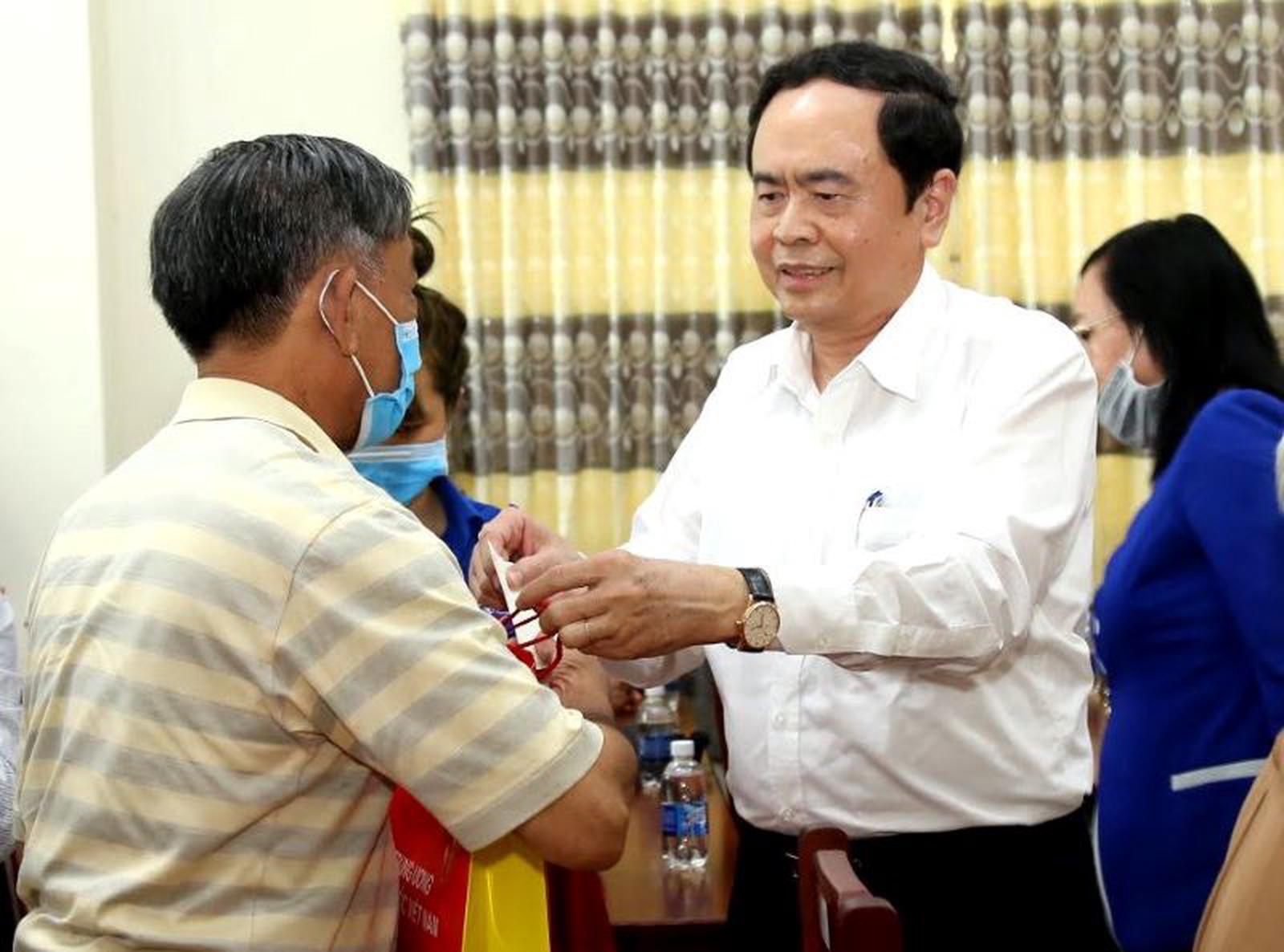 Ông Trần Thanh Mẫn trao quà cho bà con phường Tân An. Ảnh: Hương Diệp