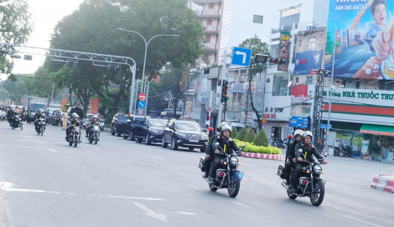 Công an thành phố Cần Thơ tuần tra trên các tuyến đường trọng điểm, nhằm bảo đảm ANTT và TTATGT. Ảnh: CAND