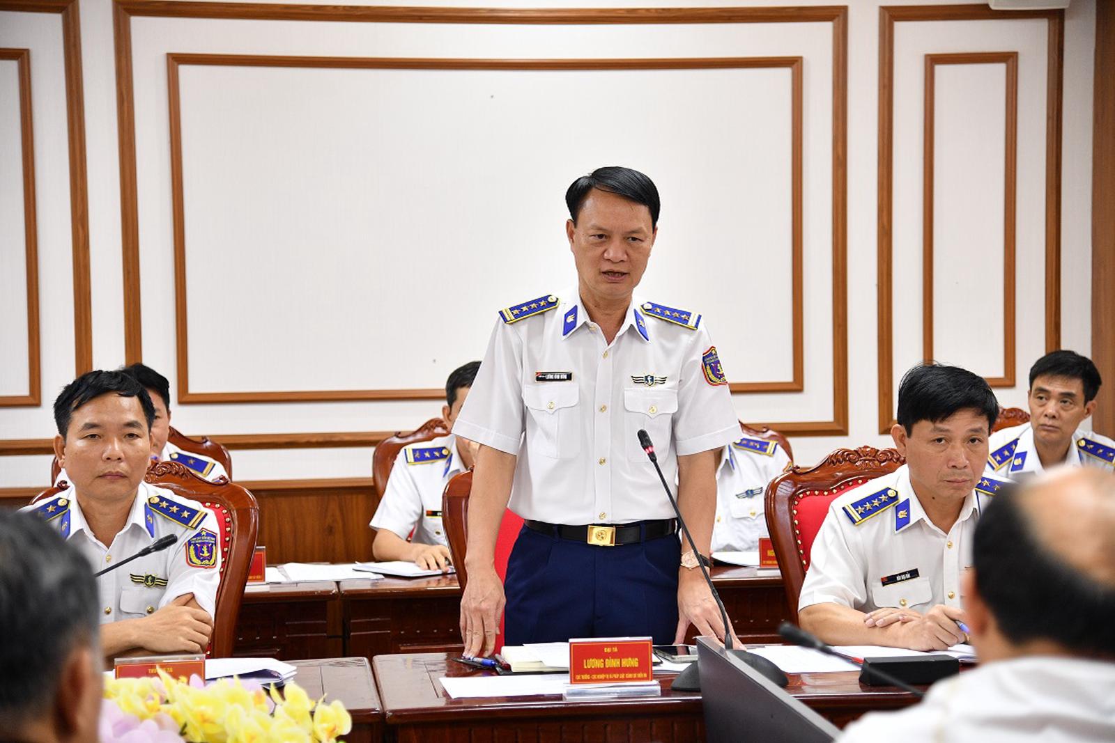 Đại tá Lương Đình Hưng - Cục trưởng Cục Nghiệp vụ và Pháp luật, Cảnh sát biển Việt Nam phát biểu tại hội nghị. Ảnh: Văn Nhanh - Đức Thái