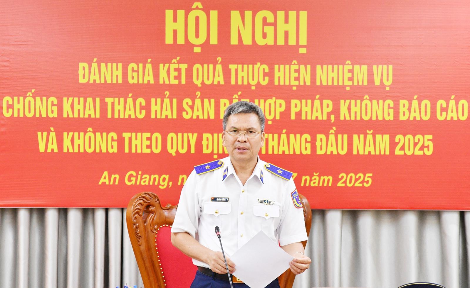 (Thanh tra) - Chiều ngày 22/7/2025, tại Bộ Tư lệnh (BTL) Vùng Cảnh sát biển 4 (đặc khu Phú Quốc, tỉnh An Giang), Ban chỉ đạo Cảnh sát biển Việt Nam về IUU đã tổ chức Hội nghị đánh giá kết quả triển khai thực hiện nhiệm vụ chống khai thác hải sản bất hợp pháp, không báo cáo và không theo quy định (IUU) trong 6 tháng đầu năm 2025. Thiếu tướng Lê Đình Cường, Phó Tư lệnh - Tham mưu trưởng, Trưởng Ban chỉ đạo Cảnh sát biển Việt Nam về IUU chủ trì hội nghị.