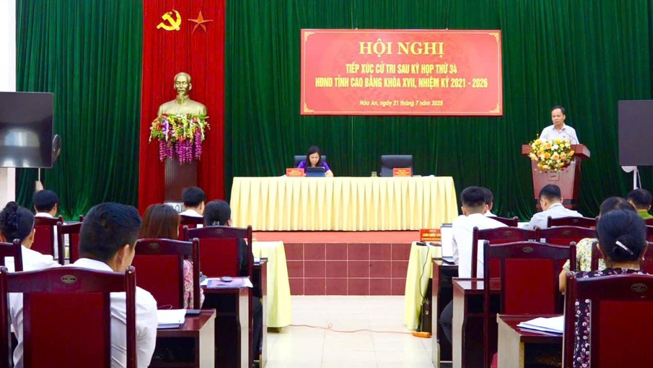 (Thanh tra) - Ngày 21/7/2025, tại xã Hoà An, đại biểu HĐND tỉnh Cao Bằng đơn vị Hòa An tổ chức buổi tiếp xúc cử tri sau Kỳ họp thứ 34 khóa XVII, nhiệm kỳ 2021 - 2025.