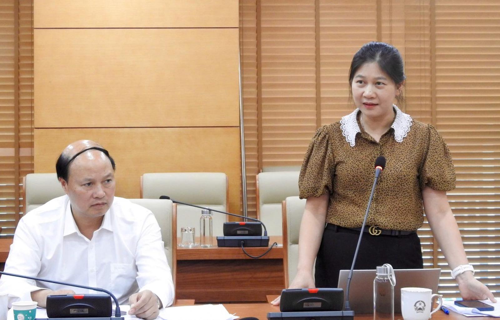 Trưởng Ban Tổ chức Tỉnh ủy Cao Bằng Lê Hải Yến phát biểu tại cuộc họp. Ảnh: BCB