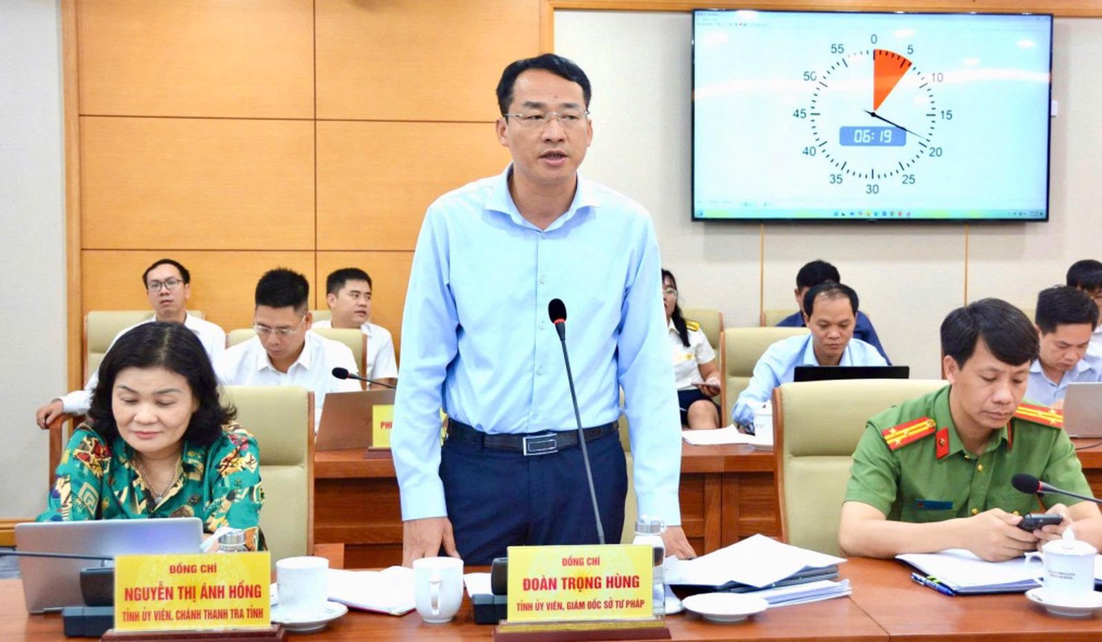 Lãnh đạo Sở Tư pháp tỉnh Cao Bằng báo cáo tại phiên họp. Ảnh: BCB