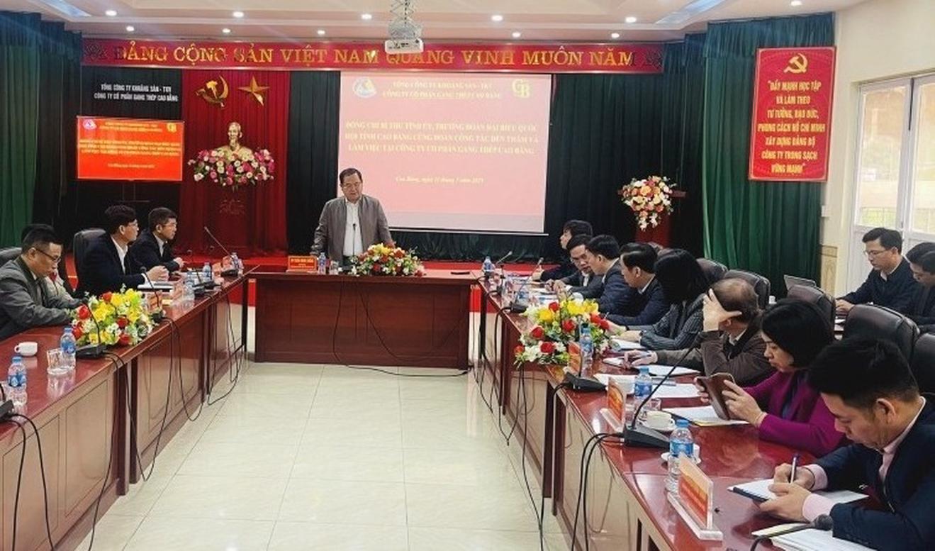 Tại Công ty cổ phần Gang thép Cao Bằng, lãnh đạo Công ty đã báo cáo với Đoàn tình hình hoạt động sản xuất, kinh doanh và nêu ra những khó khăn, vướng mắc trong công tác GPMB các dự án: Hạng mục mở rộng bãi đổ thải số 3; hạng mục khai trường khu bức mỏ sắt Nà Rụa (giai đoạn 1); khu tái định cư phục vụ dự án khai thác mở rộng mỏ sắt Nà Rụa và Khu tái định cư 2 khu đô thị mới thành phố.