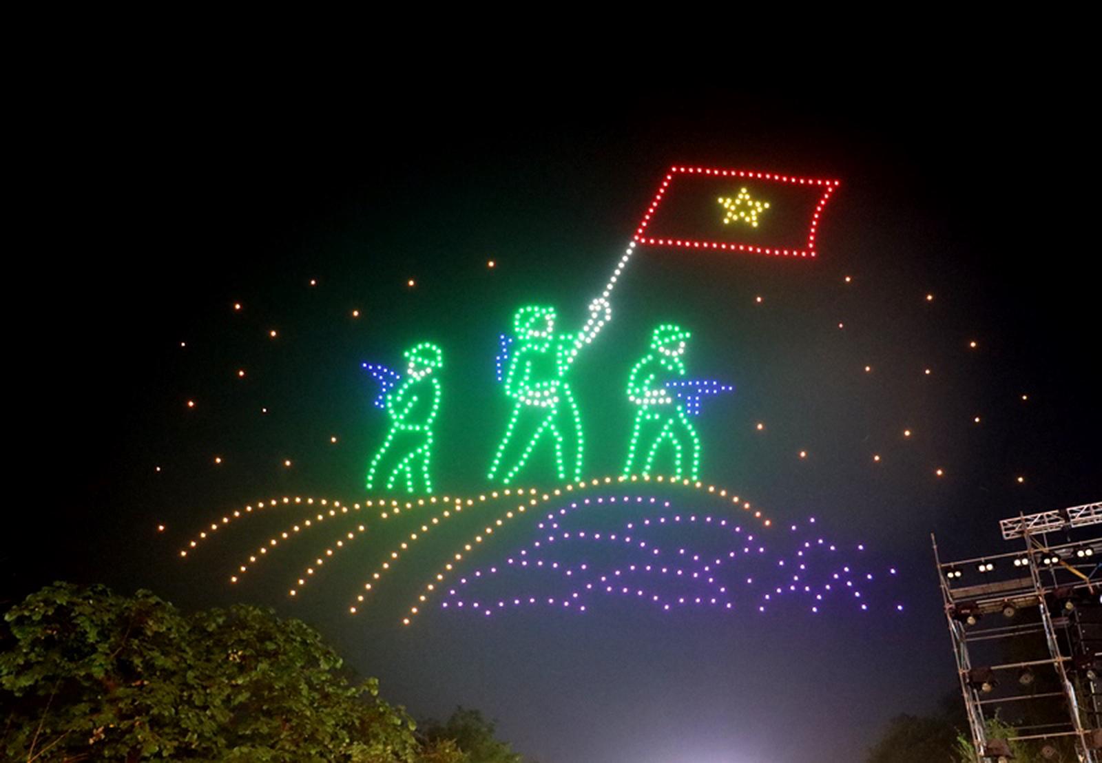 Điểm nhấn tại điểm cầu Điện Biên là màn trình diễn ánh sáng nghệ thuật Drone light của 700 chiếc máy bay không người lái với nhiều biểu tượng, hình ảnh Chiến dịch Điện Biên Phủ./.