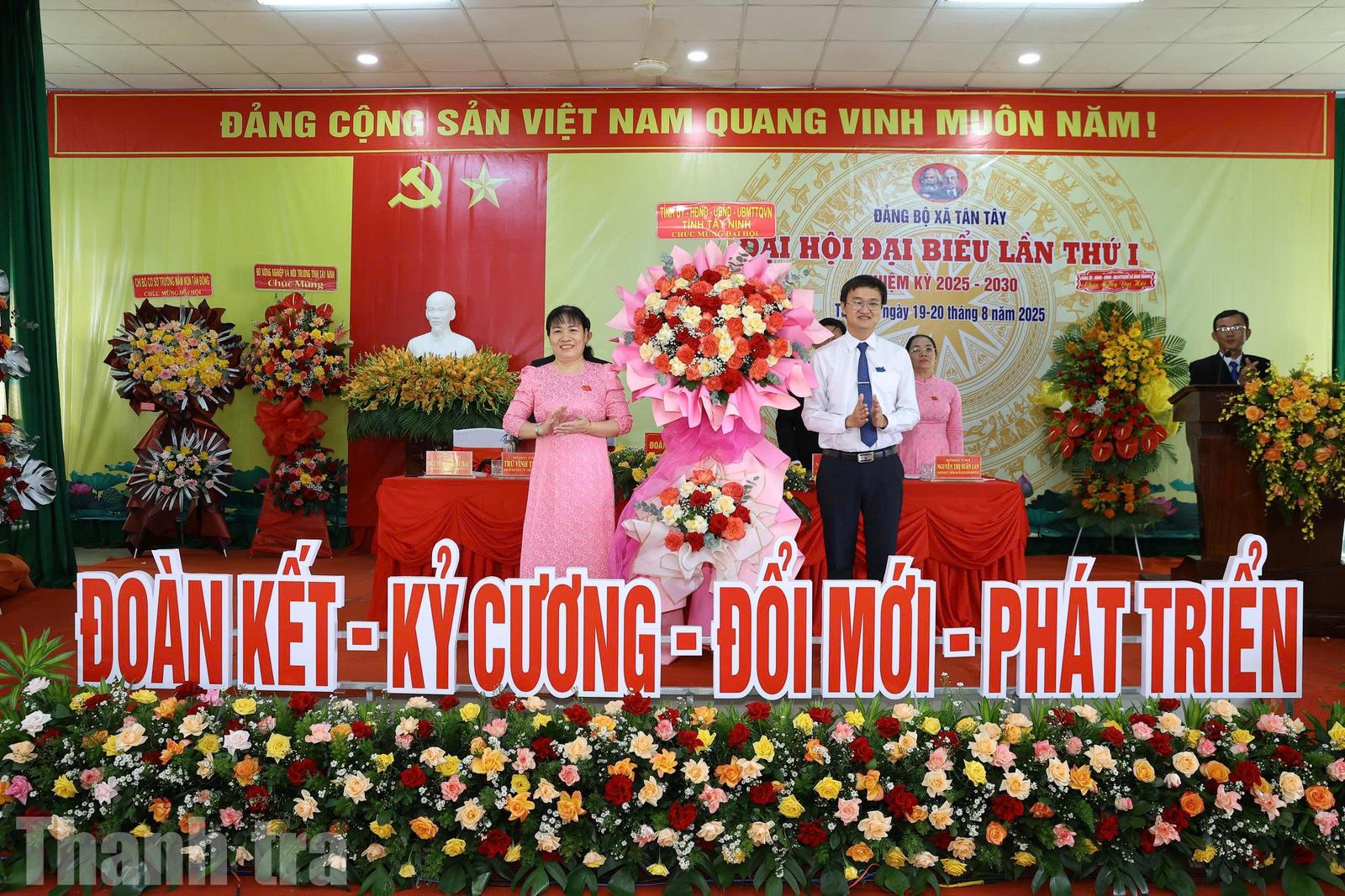 Đại hội đại biểu lần thứ I Đảng bộ xã Tân Tây đề ra 14 chỉ tiêu chủ yếu, 5 nhiệm vụ trọng tâm và 3 khâu đột phá trong nhiệm kỳ 2025-2030. Ảnh: Thu Huyền