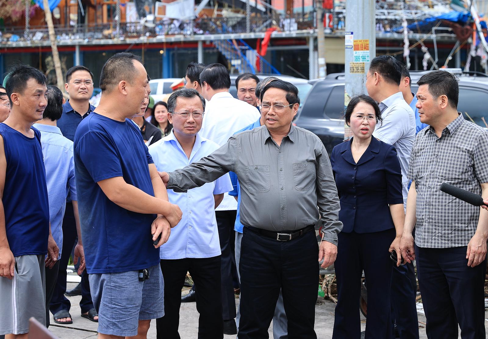 Thủ tướng Phạm Minh Chính kiểm tra công tác khắc phục hậu quả bão số 3 tại Quảng Ninh. Ảnh: N.Bắc