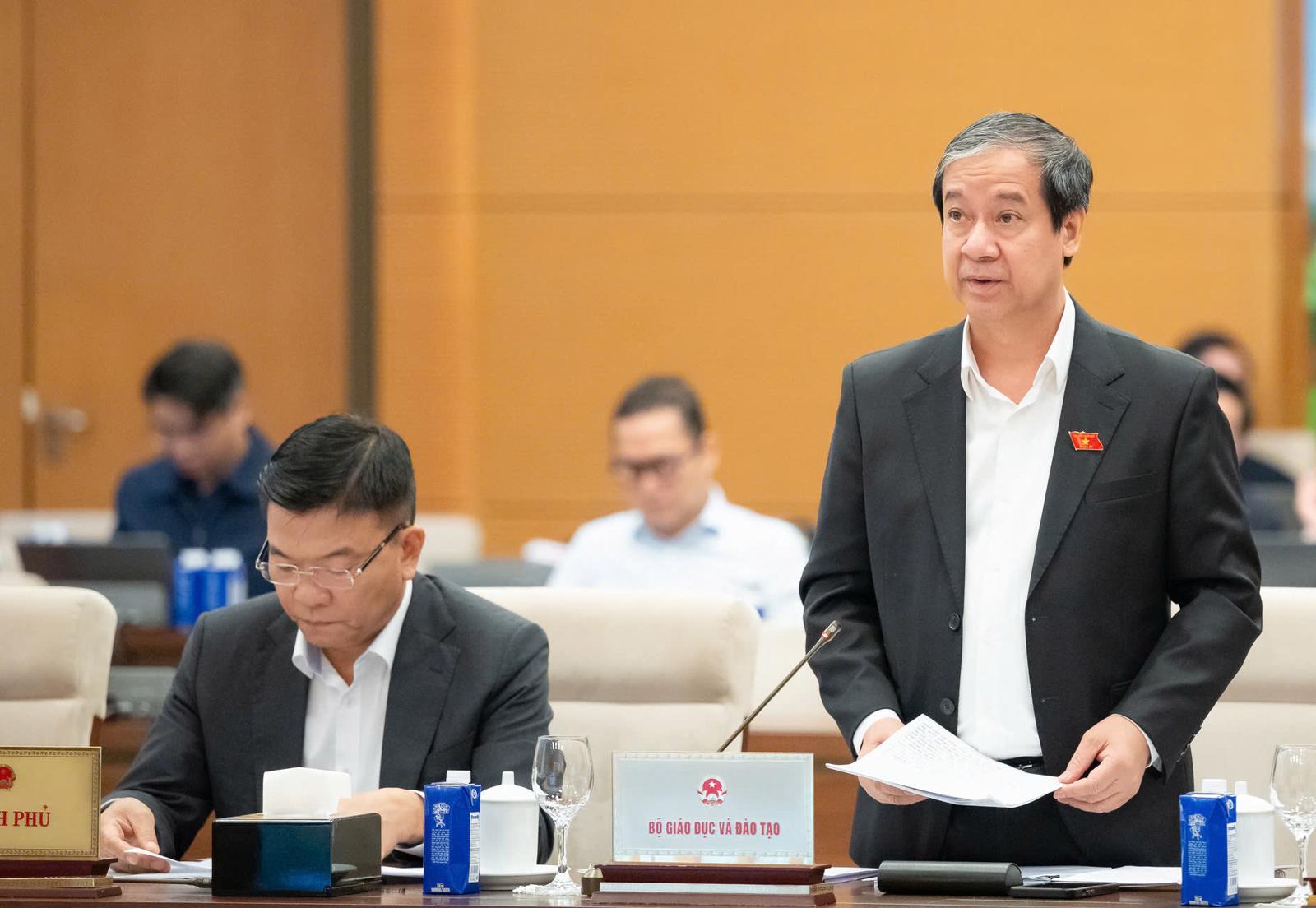 Bộ trưởng Bộ Giáo dục và Đào tạo Nguyễn Kim Sơn báo cáo tại phiên họp. Ảnh: P.Thắng