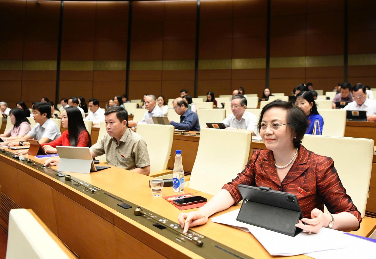 Quốc hội thông qua Luật Cán bộ, công chức sửa đổi với đại đa số đại biểu bấm nút tán thành. Ảnh: Đ.X