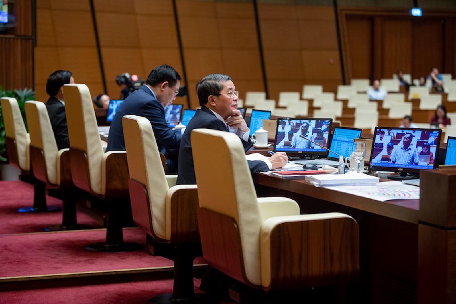 Quốc hội thảo luận ở hội trường về một số nội dung còn ý kiến khác nhau của Dự thảo Luật Kinh doanh bất động sản (sửa đổi). Ảnh: P.Thắng