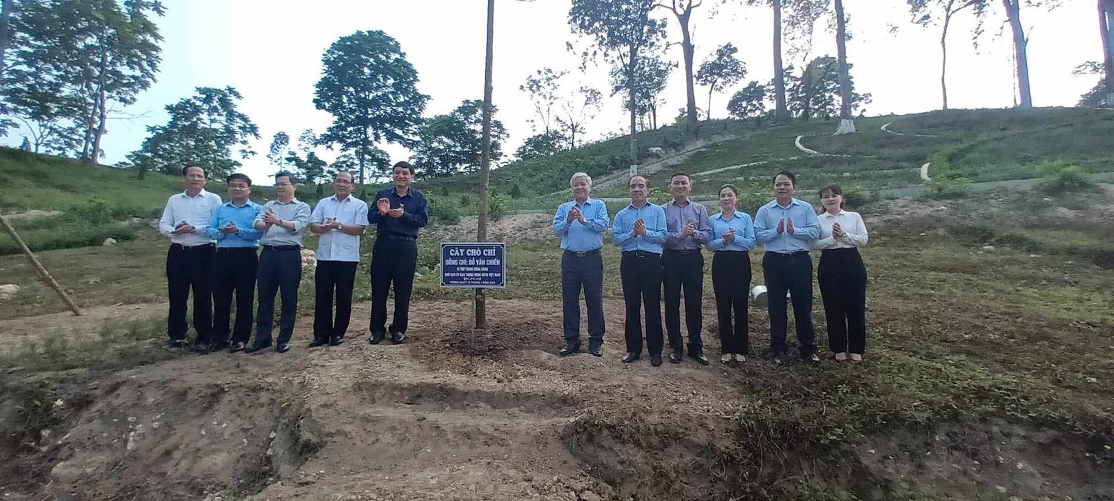 Sau lễ dâng hương, Chủ tịch Ủy ban Trung ương MTTQ Việt Nam Đỗ Văn Chiến cùng đoàn công tác đã trồng cây lưu niệm tại Vườn cây ơn Bác (thôn Tân Lập, xã Tân Trào, Sơn Dương).