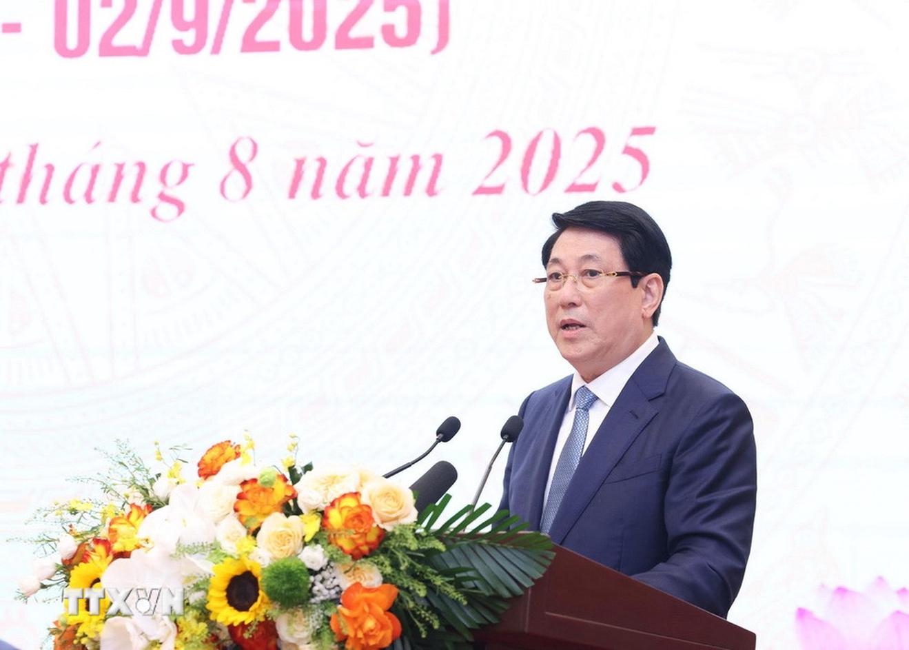 Phát biểu tại Hội nghị, Chủ tịch nước Lương Cường nhấn mạnh cách đây tròn 80 năm, dưới sự lãnh đạo của Đảng Cộng sản Việt Nam và Chủ tịch Hồ Chí Minh vĩ đại, toàn dân tộc Việt Nam đã vùng lên đập tan xiềng xích nô lệ, xóa bỏ ách thống trị của thực dân, phong kiến.