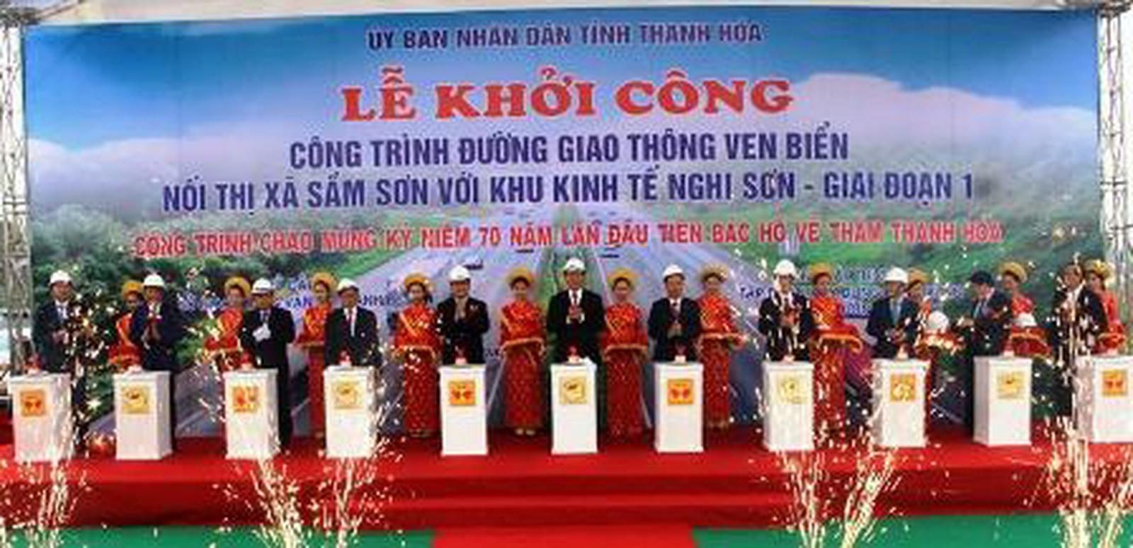 Chủ tịch nước phát lệnh khởi công đường ven biển nối thị xã Sầm Sơn với khu kinh tế Nghi Sơn. Ảnh: Trần Lê