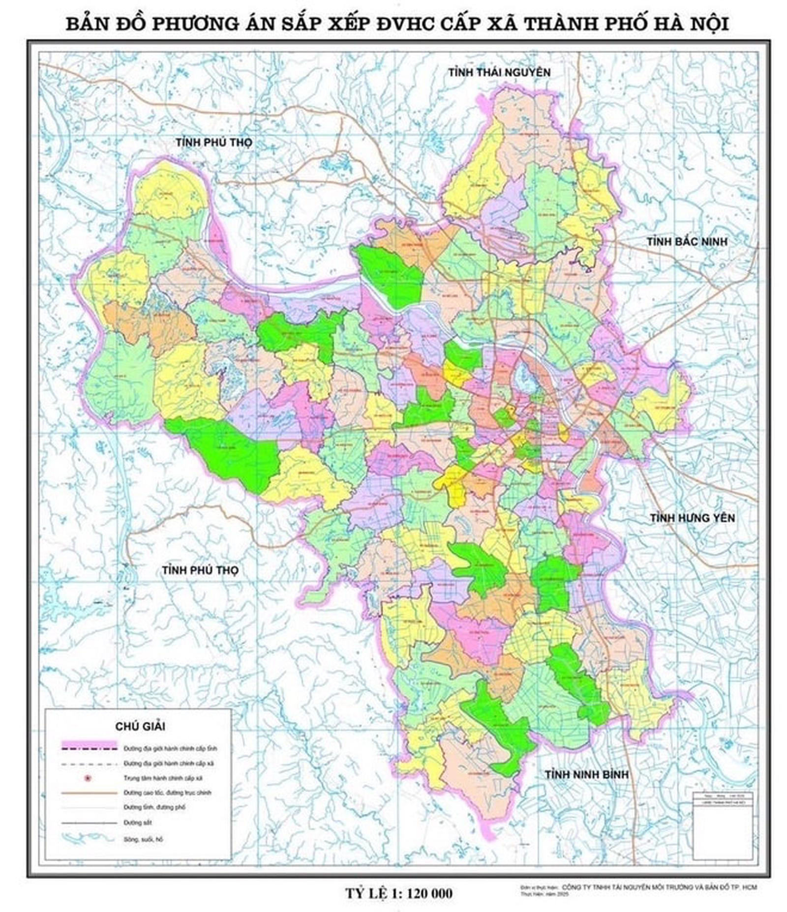 Bản đồ phương án sắp xếp 126 xã, phường mới của thành phố Hà Nội. Ảnh: UBND thành phố Hà Nội
