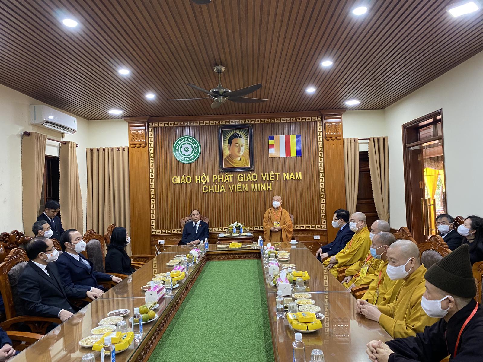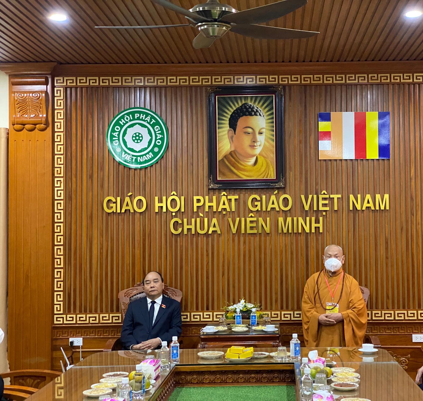 Chủ tịch nước Nguyễn Xuân Phúc chia buồn với lãnh đạo Giáo hội Phật giáo Việt Nam. Ảnh: T.V
