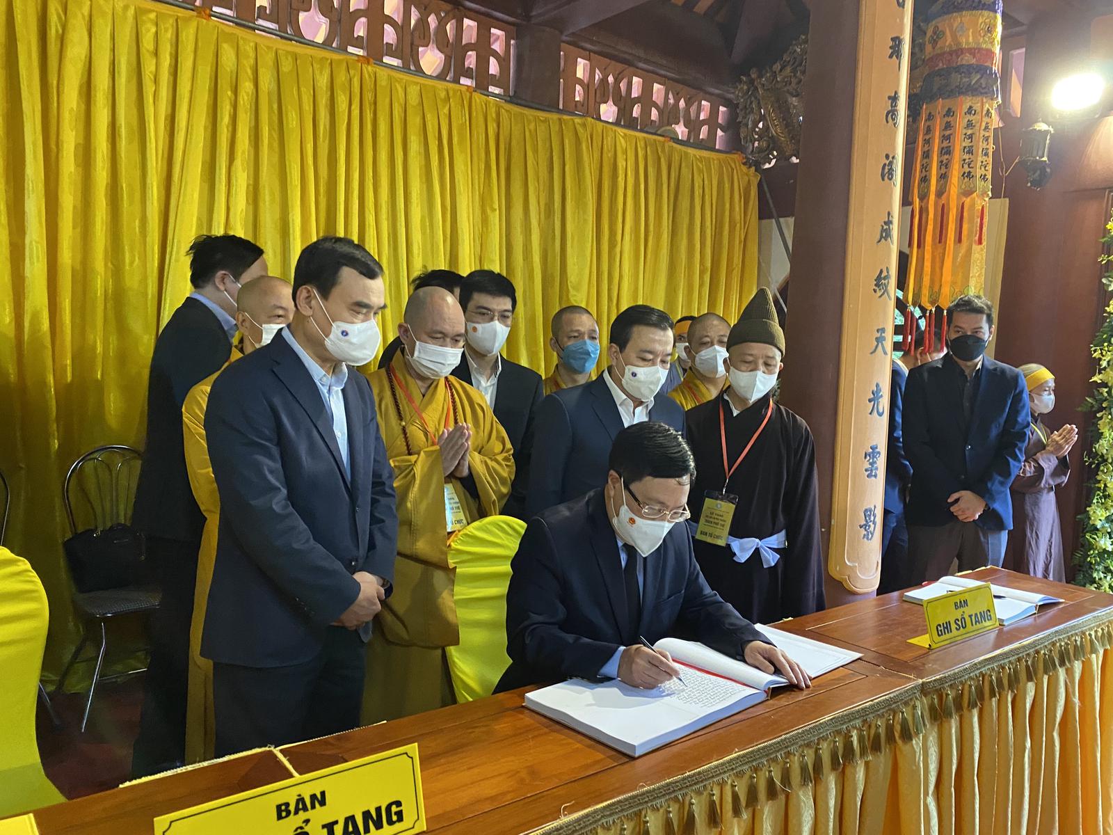 Phó Thủ tướng Phạm Bình Minh tham dự lễ viếng Đức Pháp chủ và ghi sổ tang. Ảnh: T.V