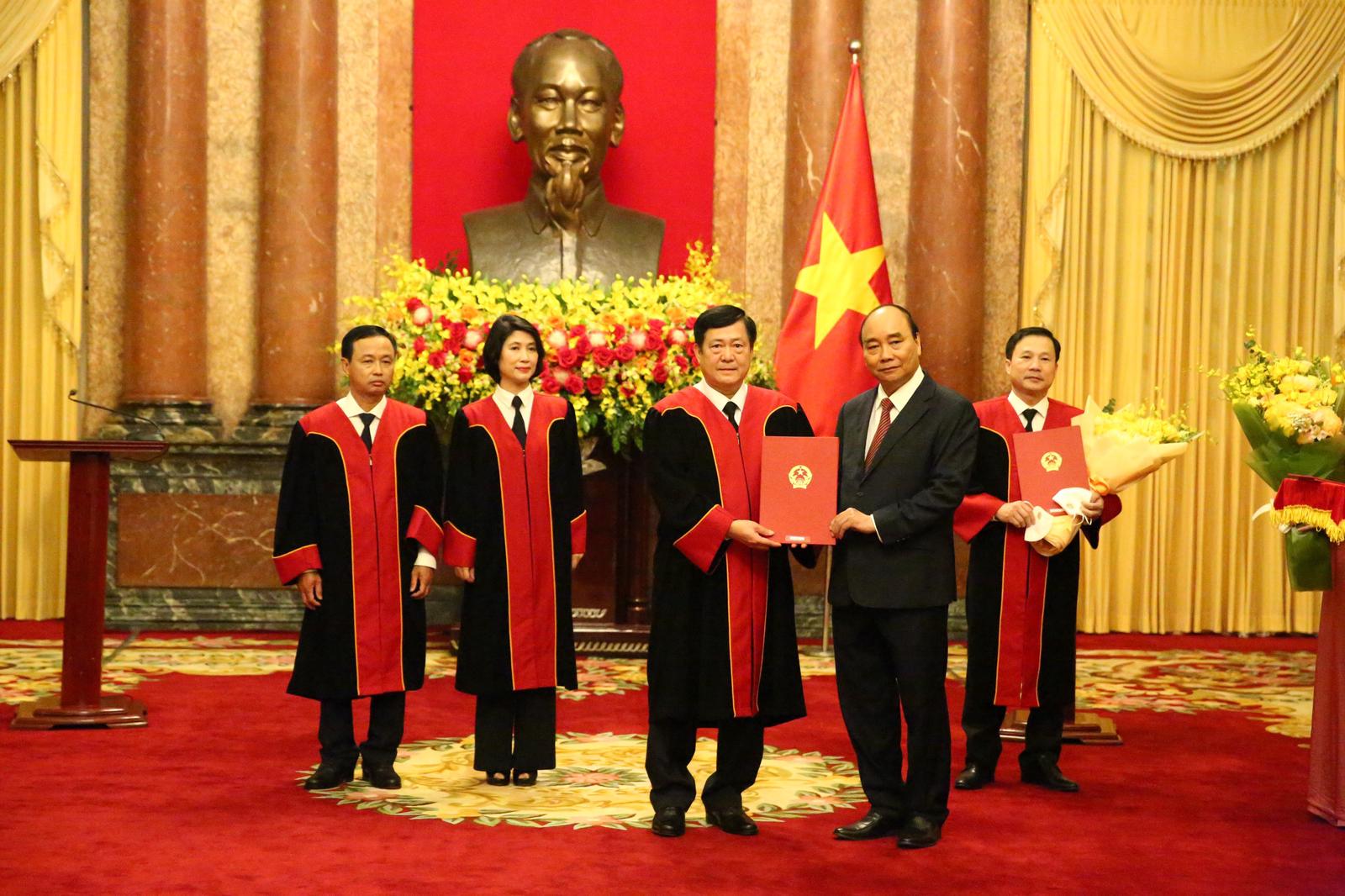 Chủ tịch nước Nguyễn Xuân Phúc trao quyết định bổ nhiệm chức danh Thẩm phán TAND Tối cao đối với Thẩm phán Cao cấp, Chánh Văn phòng TAND Tối cao Ngô Tiến Hùng