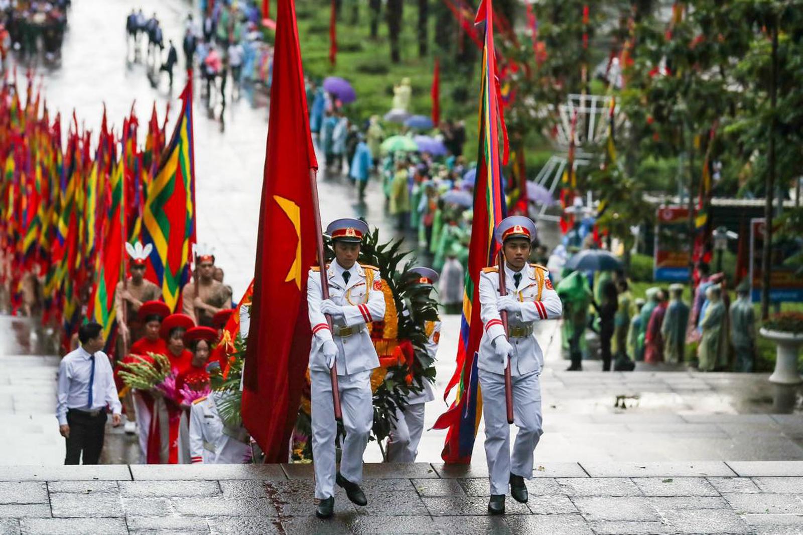 Tham dự lễ dâng hương có Chủ tịch nước Võ Văn Thưởng; đồng chí Trần Thanh Mẫn - Ủy viên Bộ Chính trị, Phó Chủ tịch Thường trực Quốc hội; đồng chí Tô Lâm - Ủy viên Bộ Chính trị, Bộ trưởng Bộ Công an; đồng chí Lương Cường - Ủy viên Bộ Chính trị, Chủ nhiệm Tổng cục Chính trị QĐND Việt Nam; đồng chí Bùi Thị Minh Hoài - Bí thư Trung ương Đảng, Trưởng Ban Dân vận Trung ương; đồng chí Đỗ Văn Chiến - Bí thư Trung ương Đảng, Chủ tịch Ủy ban Trung ương MTTQ Việt Nam; đồng chí Trần Lưu Quang - Ủy viên Trung ương Đảng, Phó Thủ tướng Chính phủ; lãnh đạo các ban, bộ, ngành Trung ương, tỉnh Phú Thọ và đông đảo nhân dân.