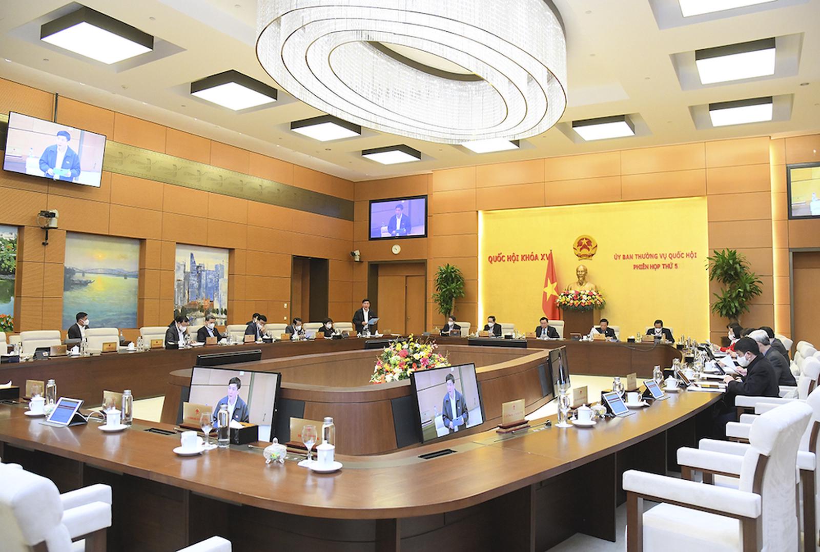Toàn cảnh phiên họp Ủy ban Thường vụ Quốc hội xem xét báo cáo giám sát văn bản quy phạm pháp luật của Hội đồng Dân tộc và các Ủy ban của Quốc hội. Ảnh: Đ.X