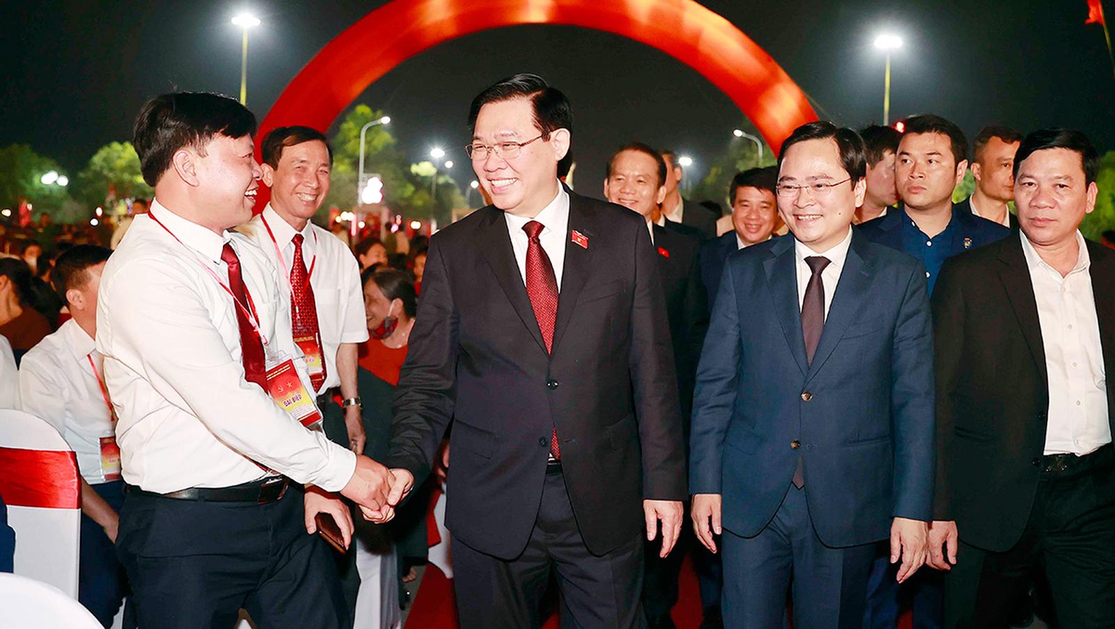 Tối 5/4, Chủ tịch Quốc hội Vương Đình Huệ dự lễ kỷ niệm 110 năm thành lập huyện Thuận Thành và công bố Nghị quyết của Ủy ban Thường vụ Quốc hội thành lập thị xã Thuận Thành, tỉnh Bắc Ninh.