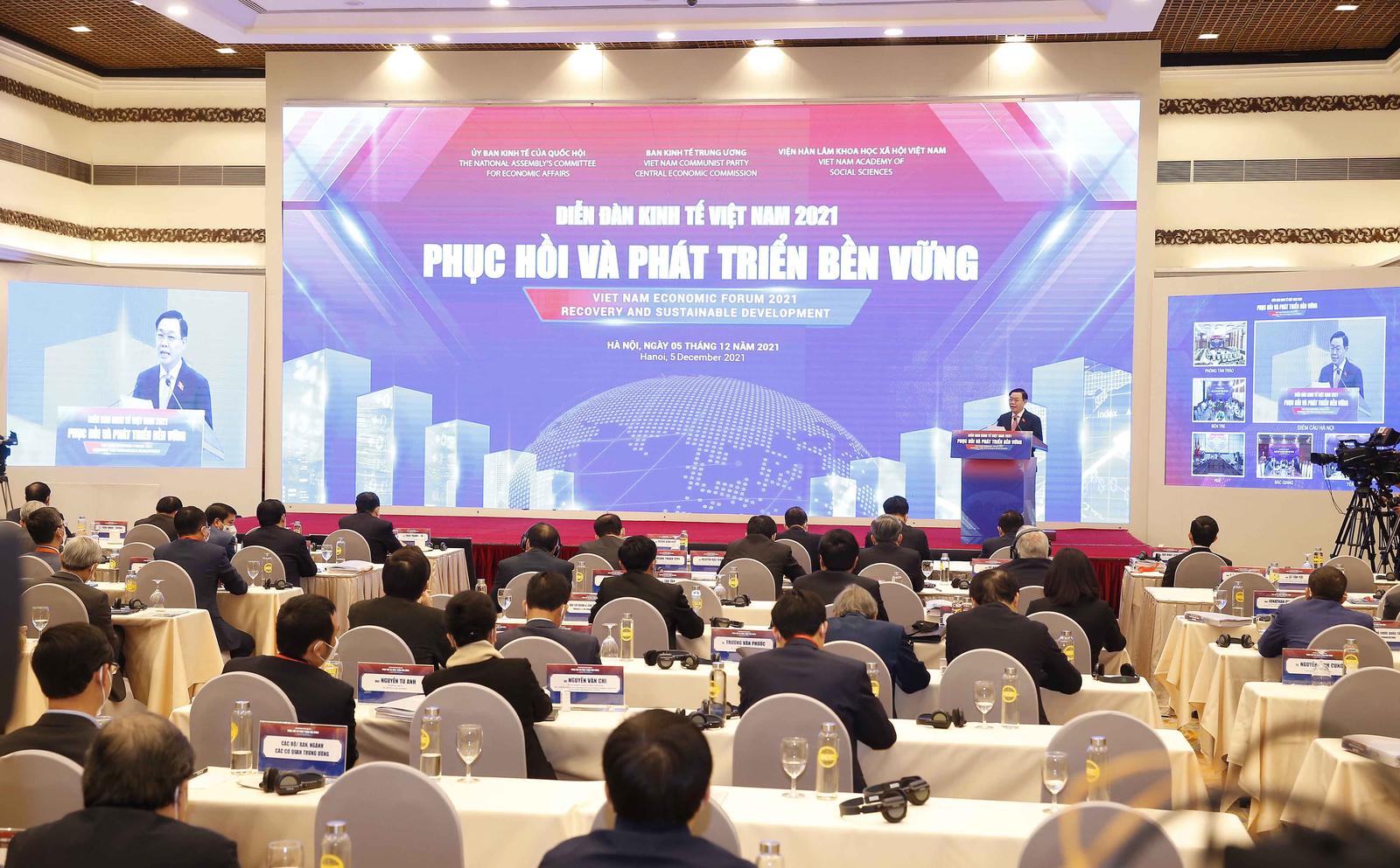 (Thanh tra) - Không thể dễ làm, khó bỏ, cần có gói hỗ trợ lãi suất, tập trung vào một số ngành trọng tâm, có khả năng phục hồi, Chủ tịch Quốc hội Vương Đình Huệ nhấn mạnh như vậy trong phát biểu bế mạc Diễn đàn Kinh tế Việt Nam 2021, chiều 5/12.