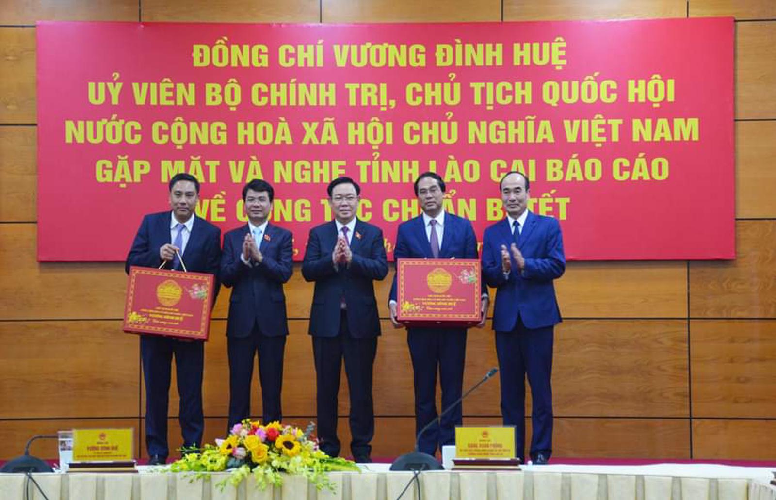 Chủ tịch Quốc hội tặng quà chúc mừng Thường trực Tỉnh ủy Lào Cai